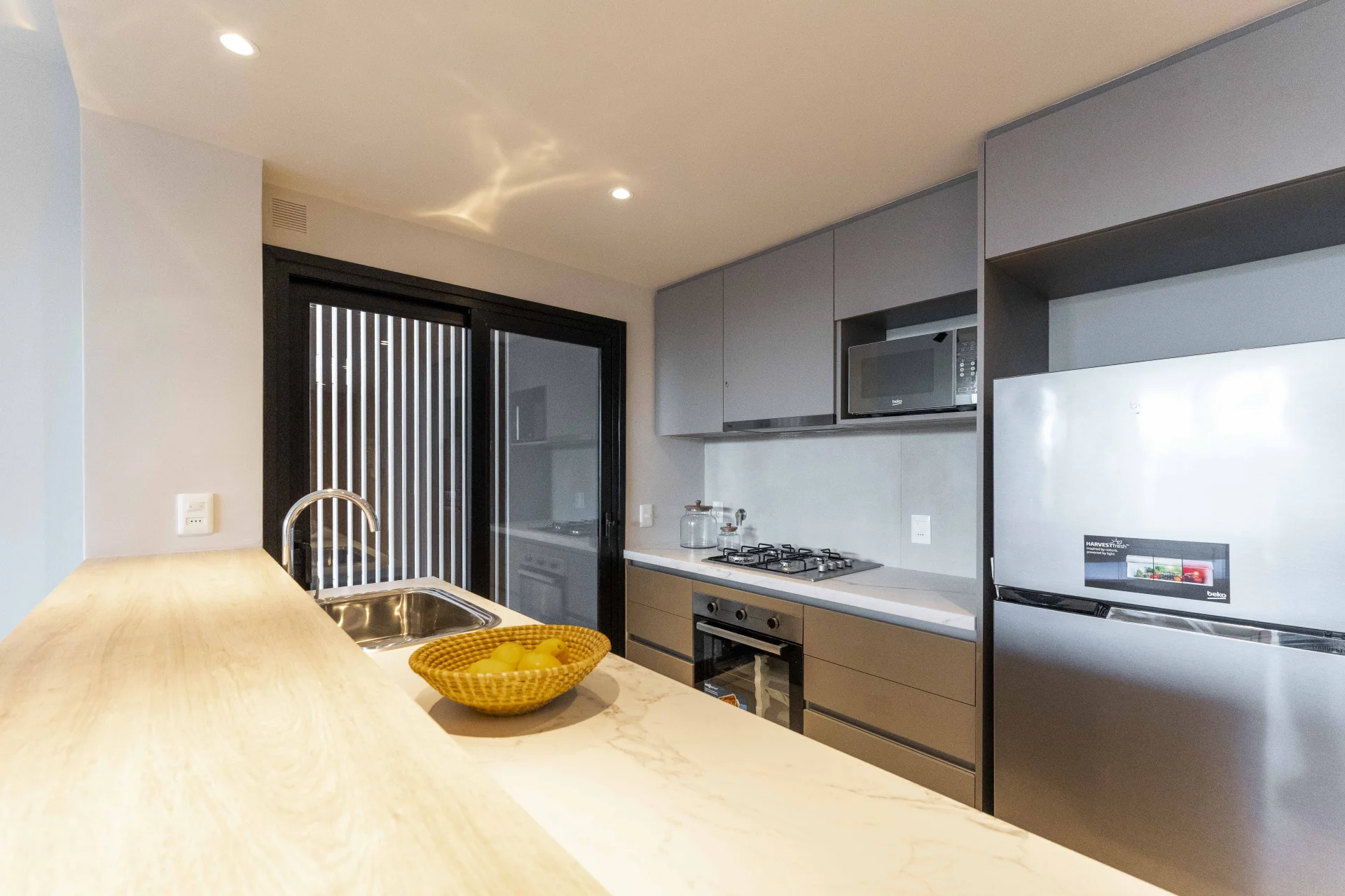 Dos Acres. Apartamento esquinero con buena vista. A ESTRENAR. 75 mts interiores + 26 metros de terrazas. orientado al norte. Hall de entrada, toilette, living comedor con salida a terraza, Cocina semi integrada con terraza lavadero. 2 dormitorios con placares, uno de ellos con balcón, 1 baño completo amplio. Calefacción por losa radiante a gas. Garage para un auto. El precio incluye gastos de conexiones. Amenities de Dos Acres: - Seguridad 24/7 y CCTV - Videoporteria - Handyman - Club House - Piscina - Playroom para niños - Gimnasio - Laundry - Espacios verdes