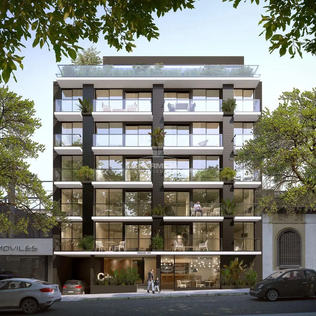 Apartamentos monoambientes y de 1 dormitorio, todos con terrazas exclusivas. Penthouses de 2 dormitorios con amplias terrazas, y un local comercial en planta baja con acceso independiente.