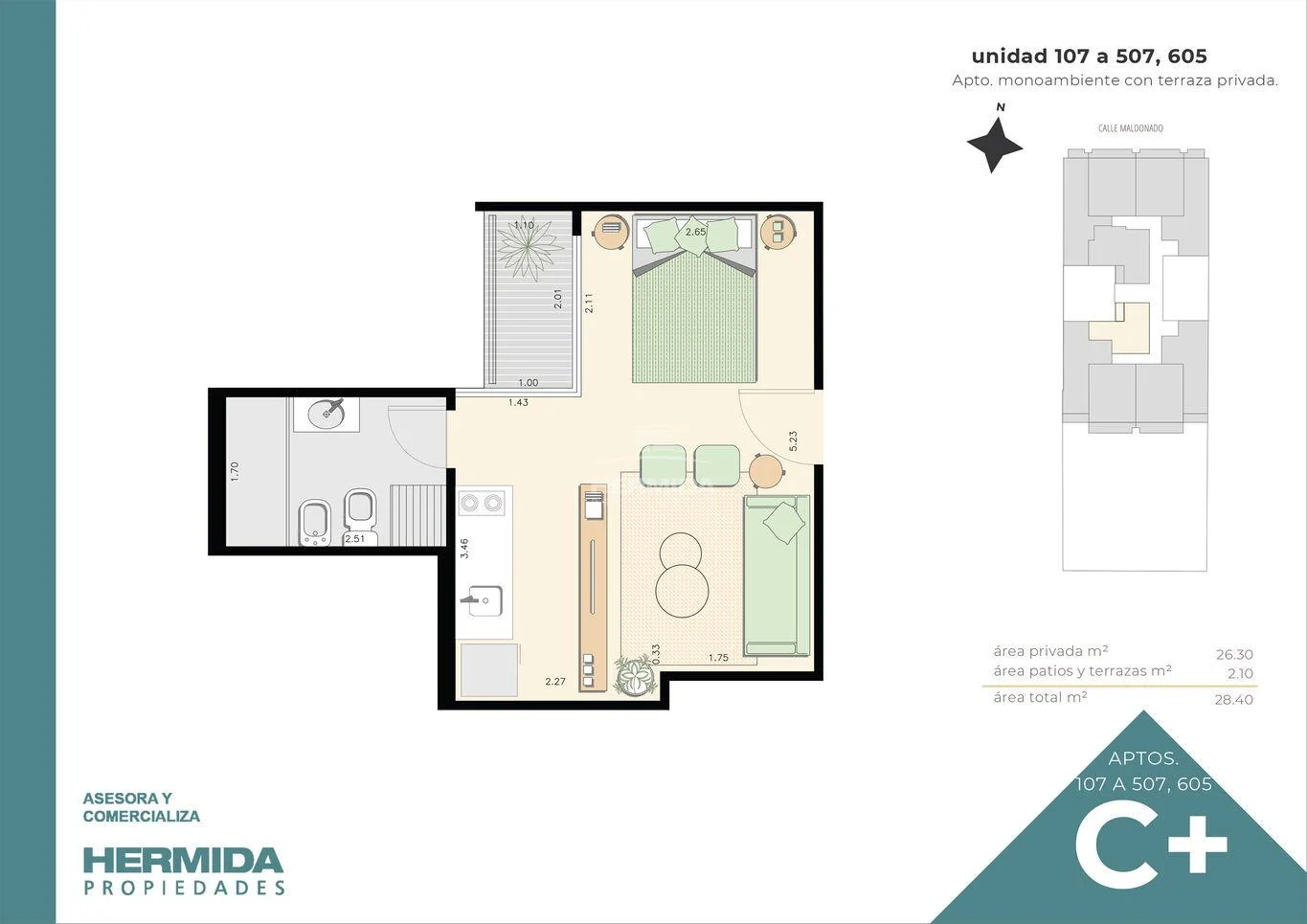 Edificio C+ se ubica en Maldonado y Ejido, en un excelente punto céntrico, próximo a facultades, centros de salud, oficinas públicas y privadas, en un entorno ideal para estudiantes, profesionales y quienes buscan vivir cerca de todo.