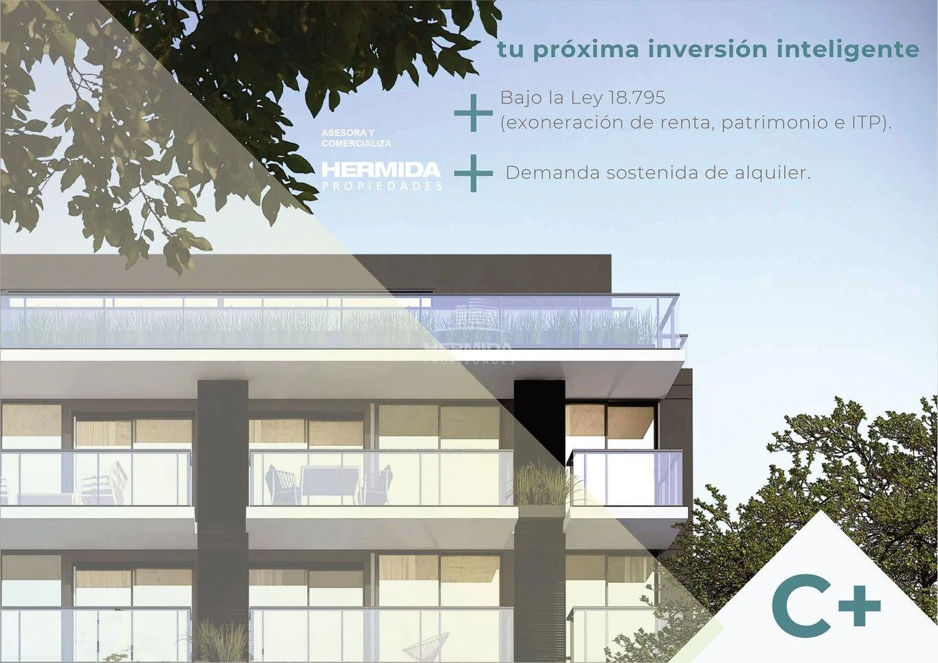Una inversión inteligente y oportuna : C+ está promovido por Ley 18.795 (exoneración de renta, patrimonio e ITP), en una zona con demanda sostenida de alquiler.
