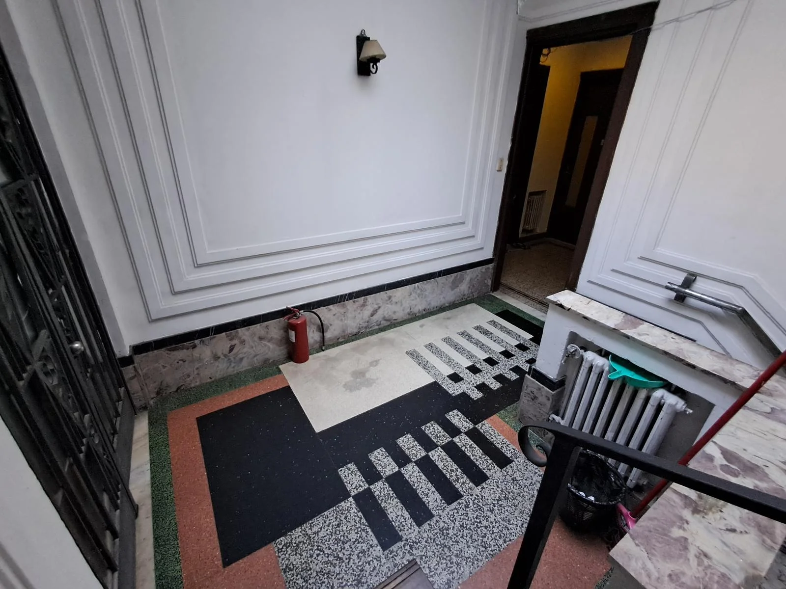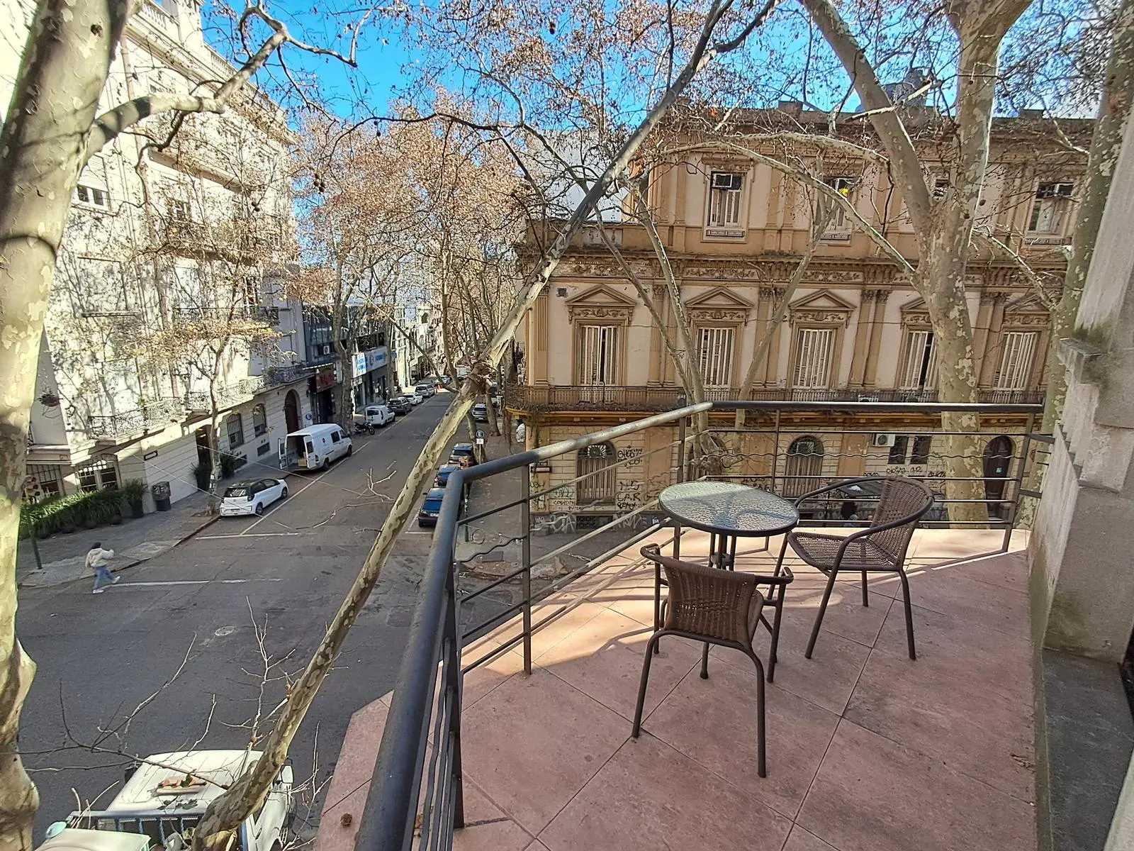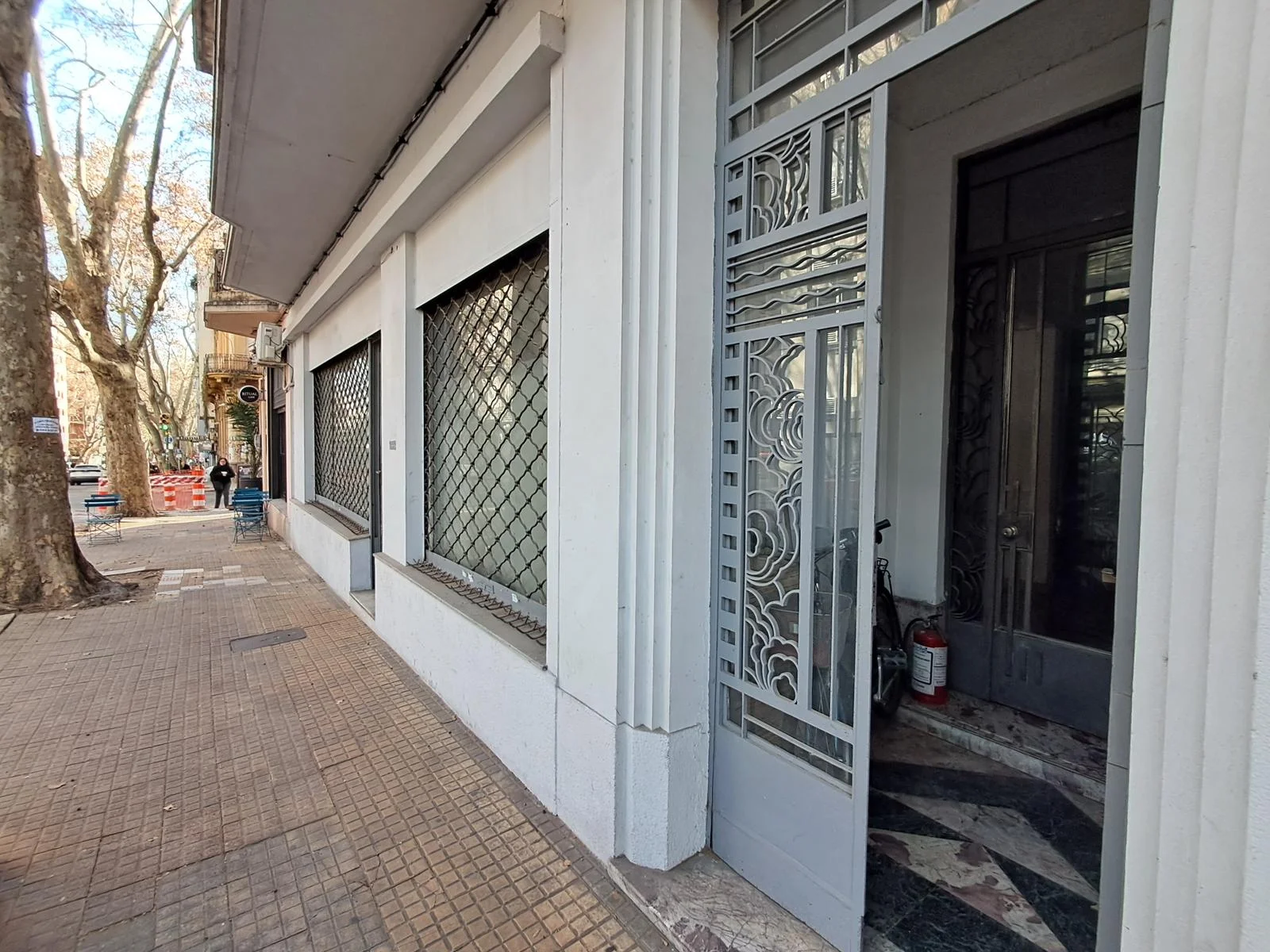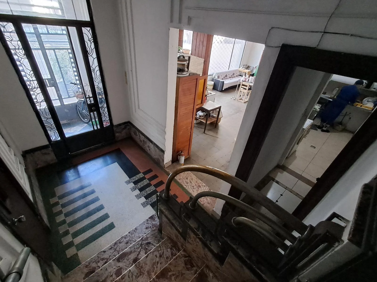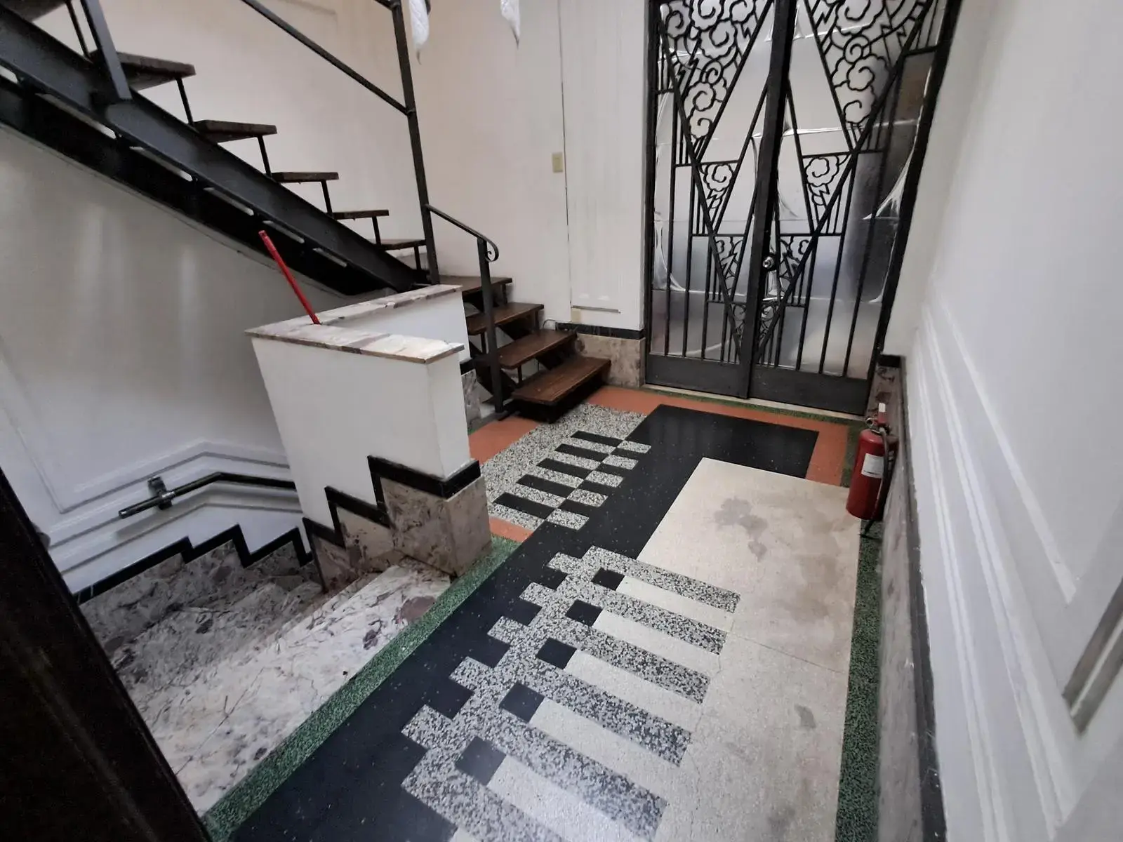 El acceso principal la propiedad es por calle Soriano mediante la puerta original de hierro forjado con vidrios biselados , zaguán con mármol al igual que la cómoda escalera que da acceso al primer piso.