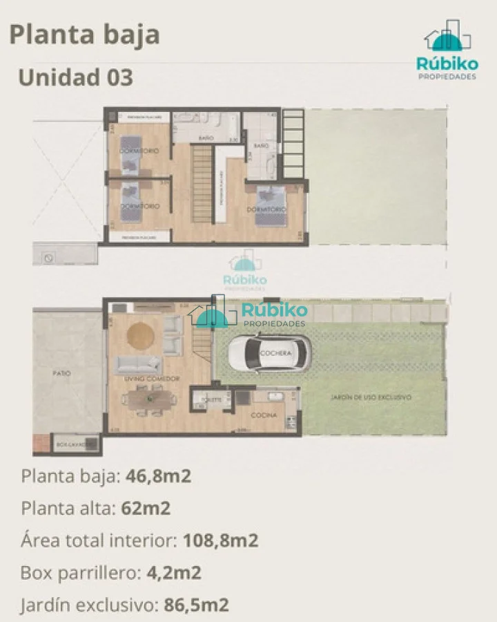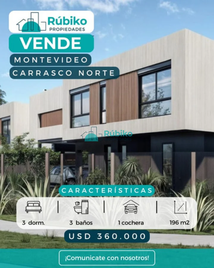 Rúbiko Propiedades ofrece a la venta tres casas de sólida construcción, ubicadas en una tranquila zona residencial con excelente conectividad. Características generales de cada propiedad: • 3 dormitorios amplios • 3 baños (uno en suite) • Estufa de alto rendimiento • Living comedor luminoso • Cocina definida con muebles a medida • Parrillero techado con espacio exterior propio • Garage con portón eléctrico • Entrada totalmente independiente • Rejas perimetrales para mayor seguridad Detalles constructivos destacados: • Excelentes materiales y terminaciones • Aislación térmica y de humedad en muros • Aberturas en aluminio con doble vidrio • Puerta principal de madera maciza • Muy buena carpintería en placares y cocina Ubicación: Zona con alto crecimiento y desarrollo en Carrasco Norte, próxima a colegios, centros comerciales y con fácil acceso a avenidas principales. Ideal para familias que buscan calidad, seguridad y confort en una vivienda moderna y funcional. Por más información o para coordinar una visita, contactanos a través de Rúbiko Propiedades Referencia Interna : Tera-16