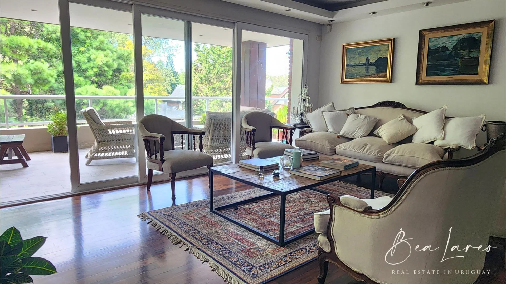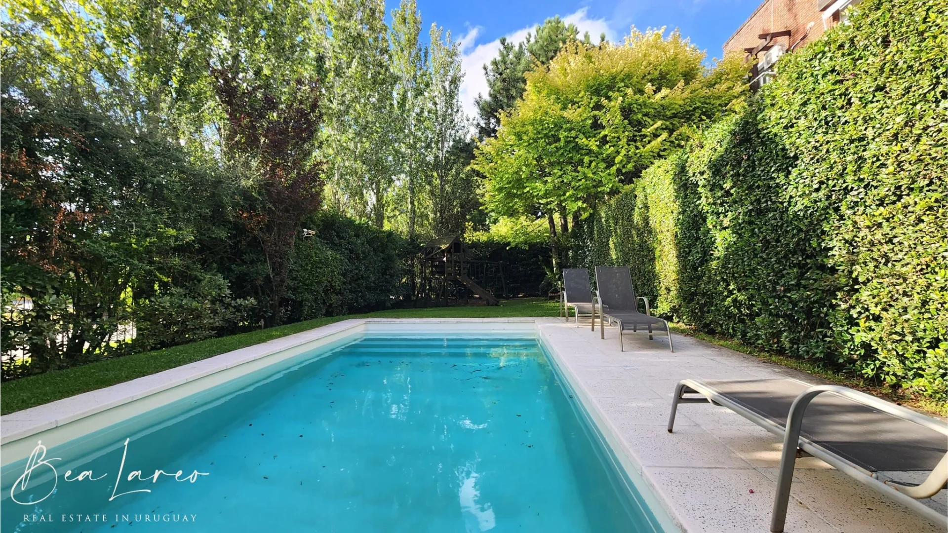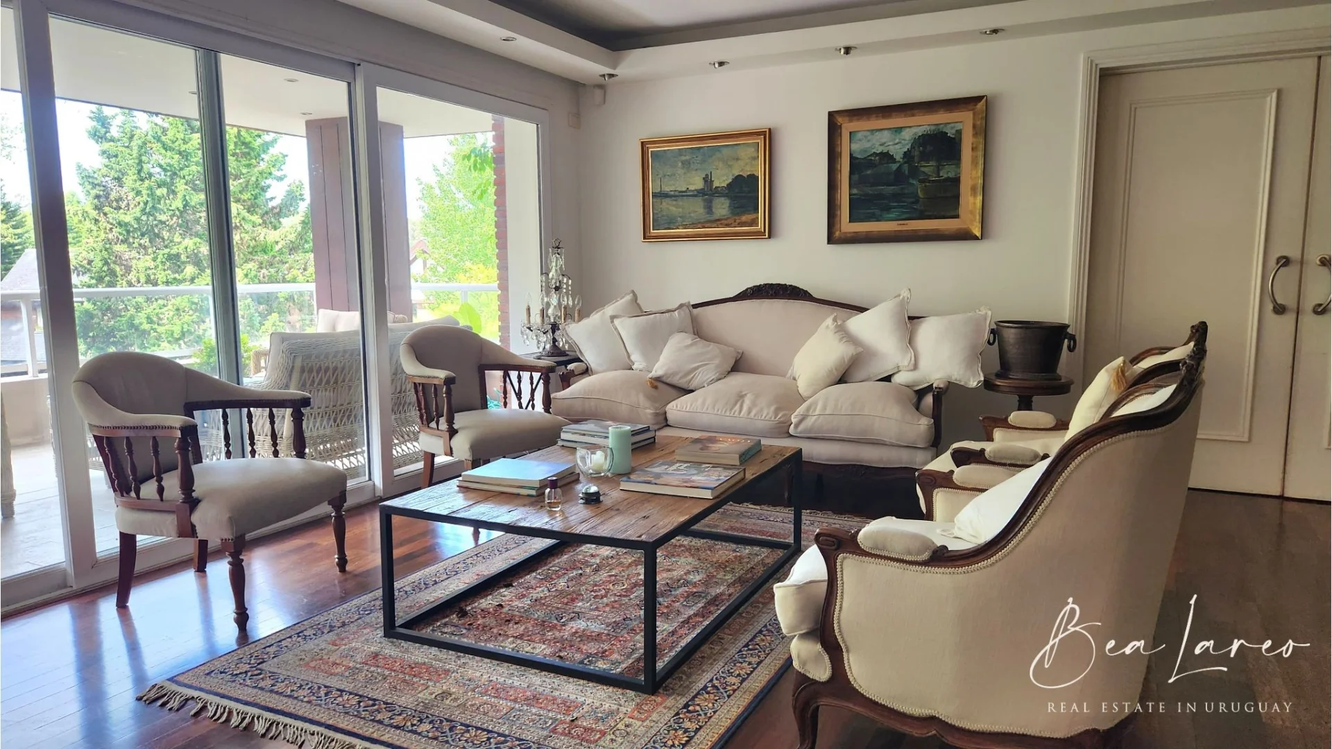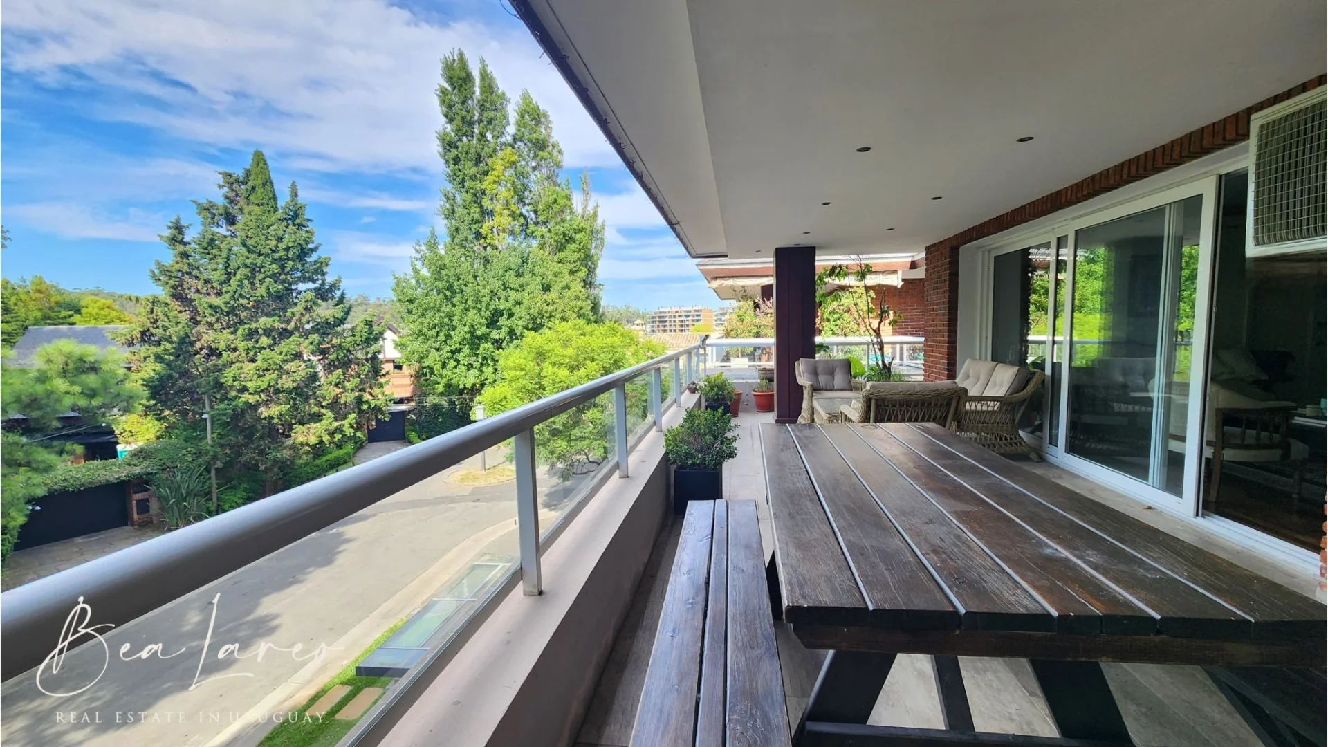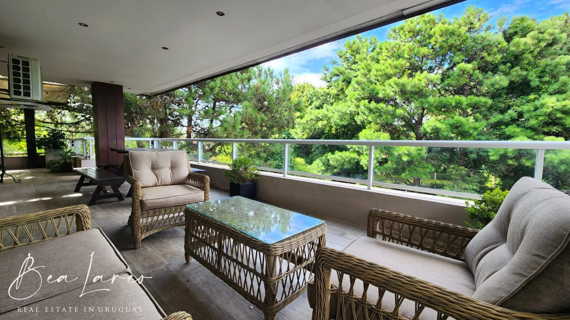 Este apartamento de excelente calidad de construcción y terminaciones dispone de una espectacular planta de 210 m2 interiores, a la que se suma una disfrutable terraza de 46 m2 orientada al norte. Cuenta con generosos espacios sociales: gran living comedor con salida a la terraza, amplio estar con estufa a leña conectado a la terraza con parrillero, escritorio (o 4to dormitorio), y baño social. Espaciosa cocina con office, terraza lavadero, y dormitorio de servicio con baño. Dormitorio principal en suite con acceso a terraza, y 2 amplios dormitorios que comparten un baño. Calefacción por losa radiante eléctrica (Eurocable). Completa la propiedad una buhardilla de 35 m2, y una azotea de uso exclusivo de 207 m2 edificable, que permitiría transformarlo en duplex. Garaje para 2 autos y espacio de estacionamiento para un auto adicional. El edificio cuenta con servicio de portería 8 hs y vigilancia de Ketlark 24 hs, jardín de uso común y piscina. Gastos comunes: $38.000
