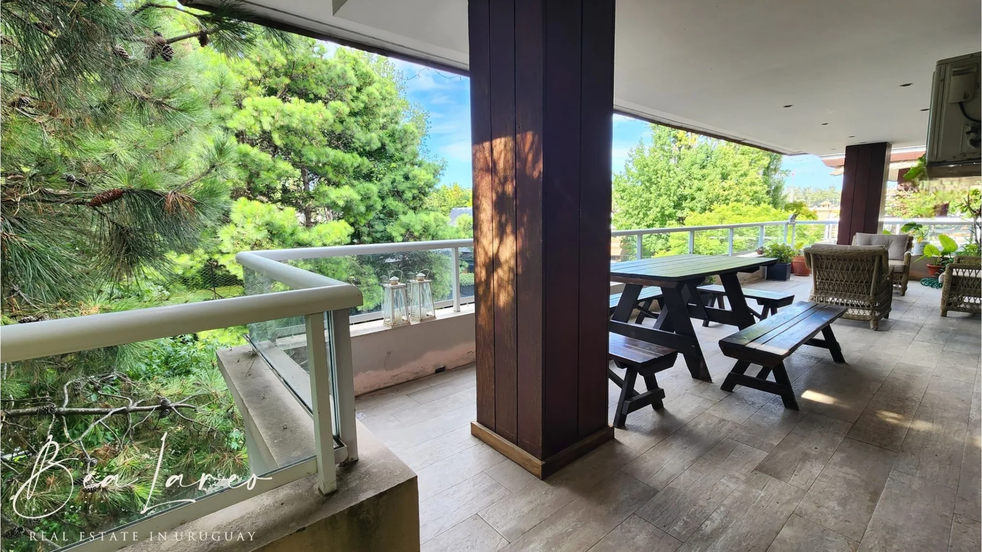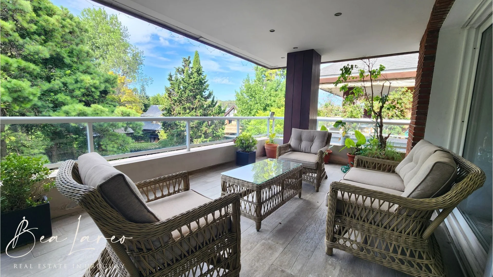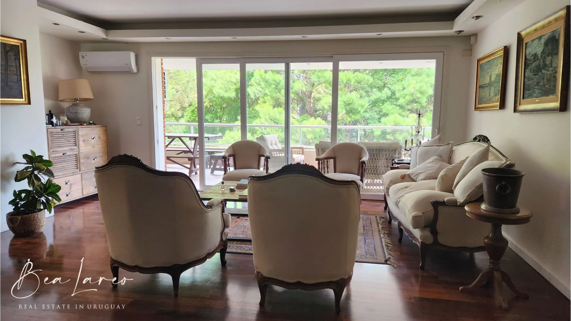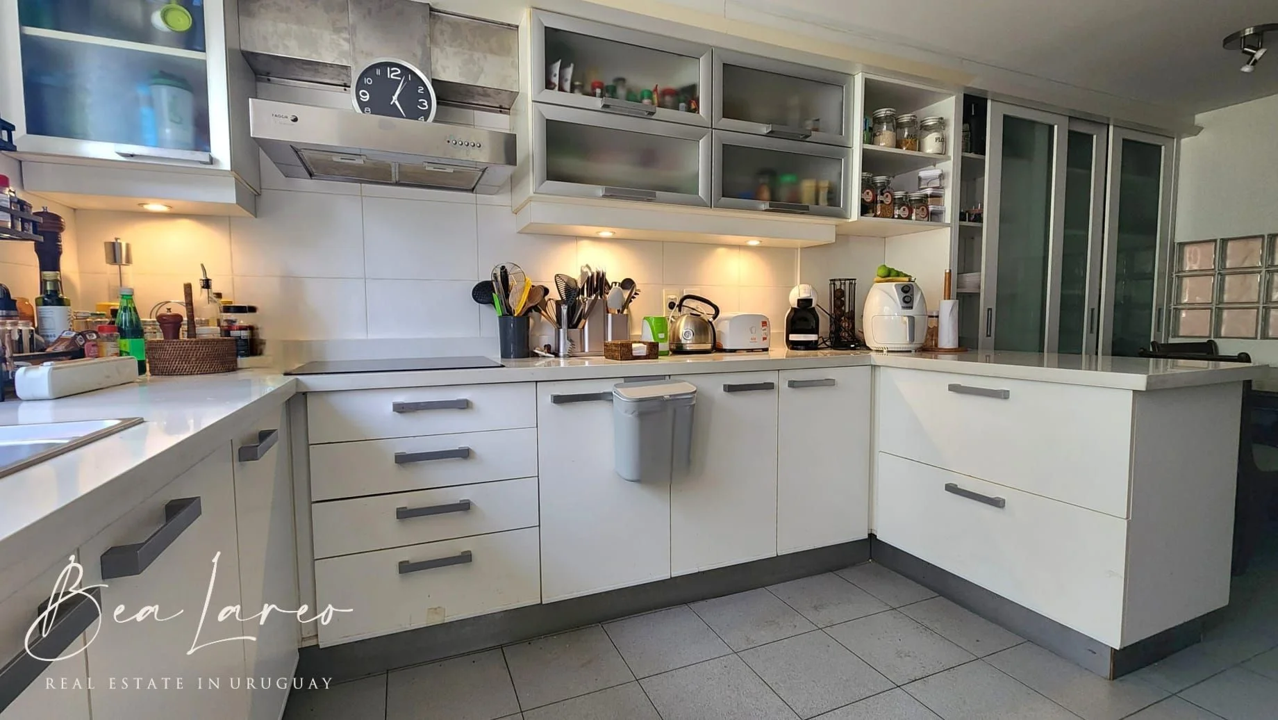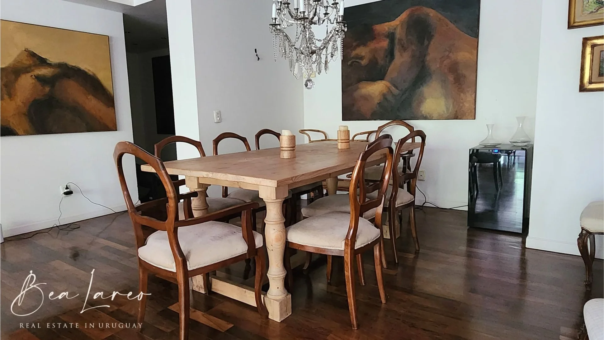 Este apartamento de excelente calidad de construcción y terminaciones dispone de una espectacular planta de 210 m2 interiores, a la que se suma una disfrutable terraza de 46 m2 orientada al norte. Cuenta con generosos espacios sociales: gran living comedor con salida a la terraza, amplio estar con estufa a leña conectado a la terraza con parrillero, escritorio (o 4to dormitorio), y baño social. Espaciosa cocina con office, terraza lavadero, y dormitorio de servicio con baño. Dormitorio principal en suite con acceso a terraza, y 2 amplios dormitorios que comparten un baño. Calefacción por losa radiante eléctrica (Eurocable). Completa la propiedad una buhardilla de 35 m2, y una azotea de uso exclusivo de 207 m2 edificable, que permitiría transformarlo en duplex. Garaje para 2 autos y espacio de estacionamiento para un auto adicional. El edificio cuenta con servicio de portería 8 hs y vigilancia de Ketlark 24 hs, jardín de uso común y piscina. Gastos comunes: $38.000