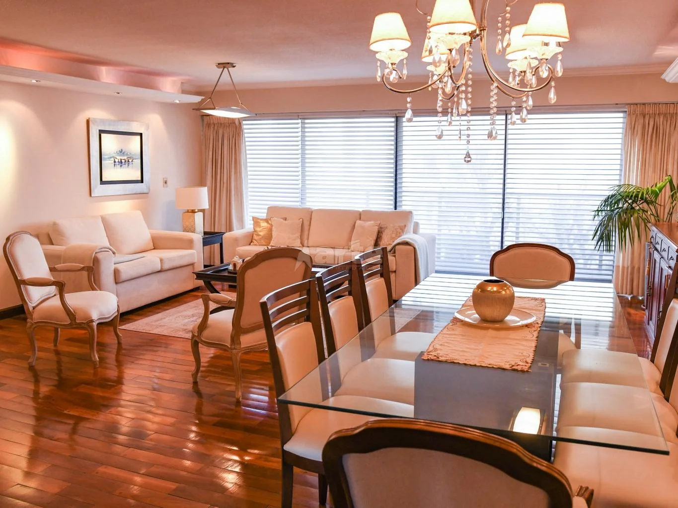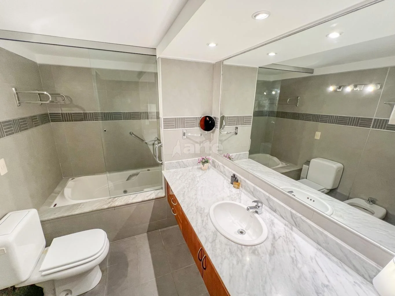 En cuanto a las terminaciones podemos destacar una excelente carpintería con pisos en madera de lapacho y puertas interiores y de placares en dormitorios enchapadas en cedro. El edificio cuenta con losa radiante central, portería en las mañanas con vigilancia remota 24hs y 2 ascensores.