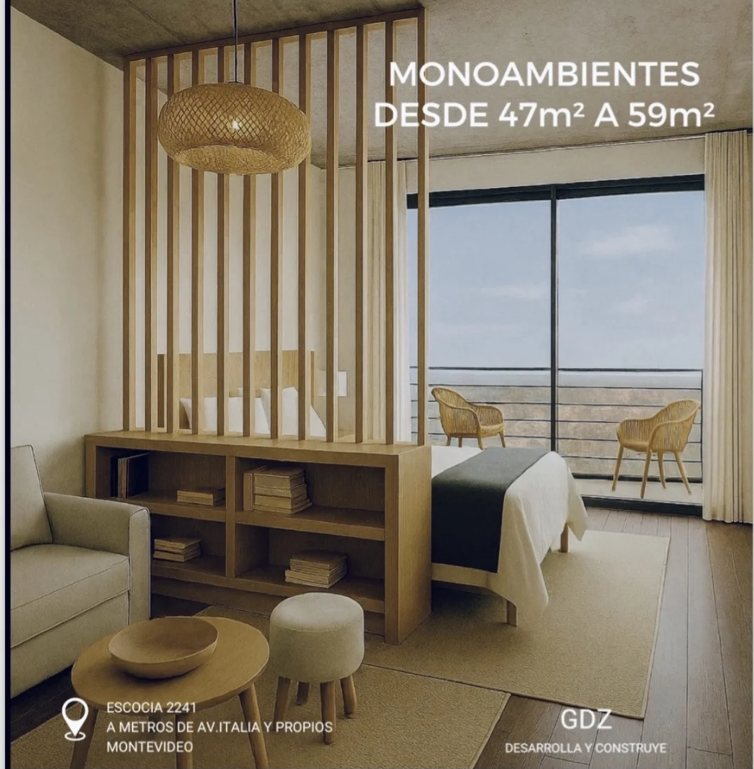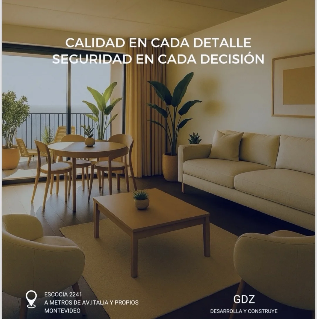 Descubra su nuevo hogar o la inversión perfecta en estos encantadores apartamentos de 1 y 2 dormitorios, estratégicamente ubicados a solo dos cuadras de Av. Italia y Av. Propios. Estos modernos espacios, amparados por la Ley de Vivienda Promovida, ofrecen una oportunidad inigualable tanto para quienes buscan su primera vivienda como para inversores inteligentes.