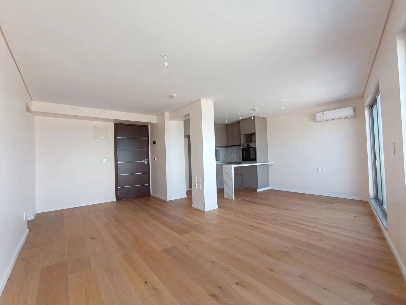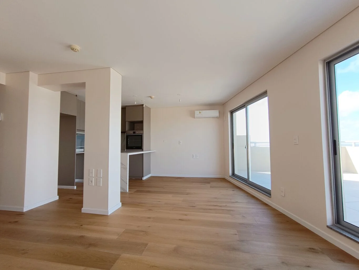 Living comedor con cocina integrada con acceso a amplia terraza con hermosa vista al mar. Cómodo dormitorio con placard , vestidor, baño en suite, baño social. Equipado con aire acondicionado, anafe, campana y horno.