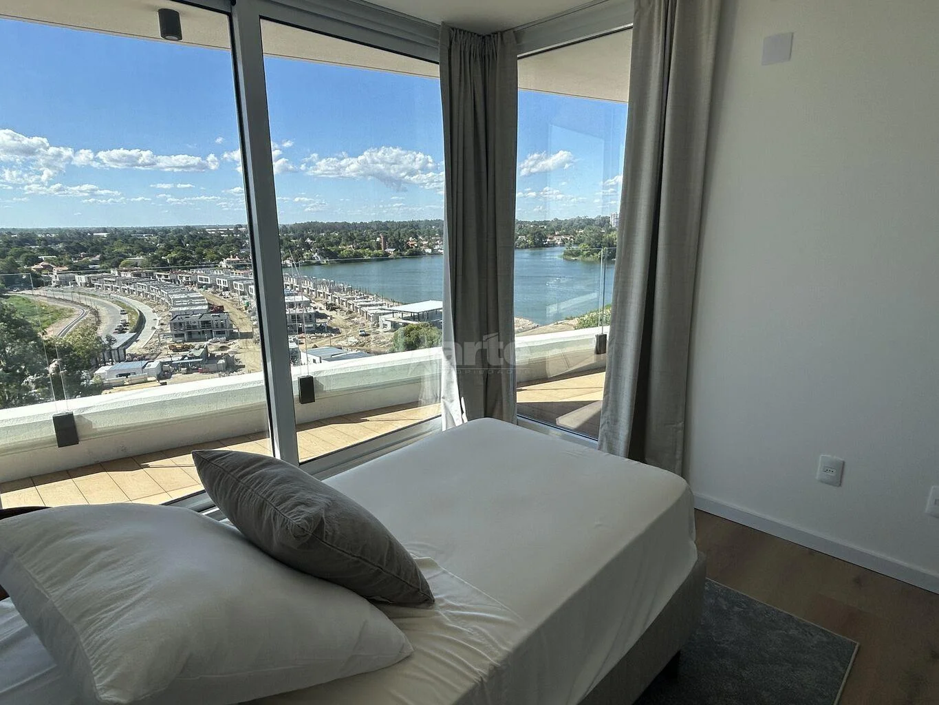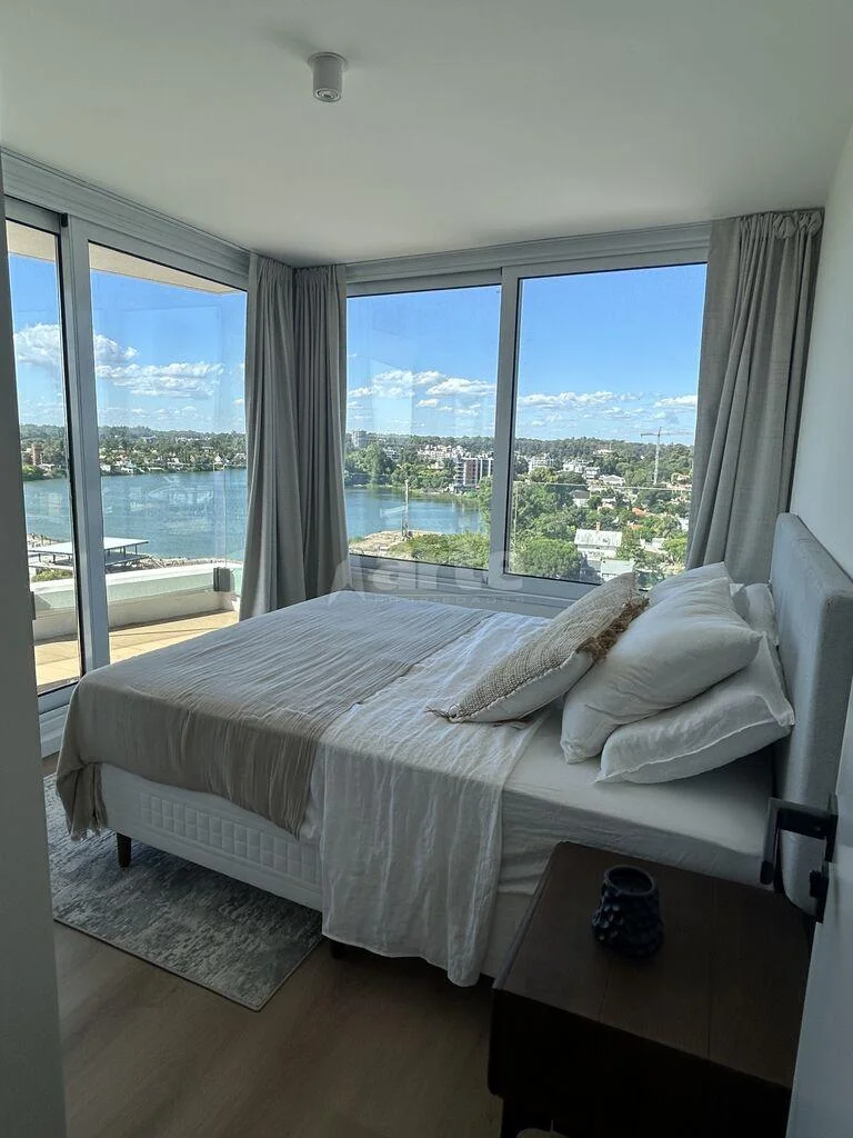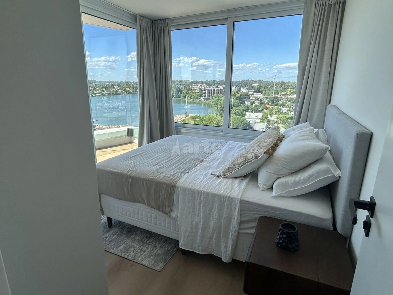 Divino apartamento con todos los ambientes exteriores y vista al lago, living comedor con cocina semi definida pero integrada por una barra con placares aéreos y bajo mesadas. Tres dormitorios con placares, dos baños completos, terraza que comunica el living y 2 dormitorios, garaje doble, terraza lavadero.