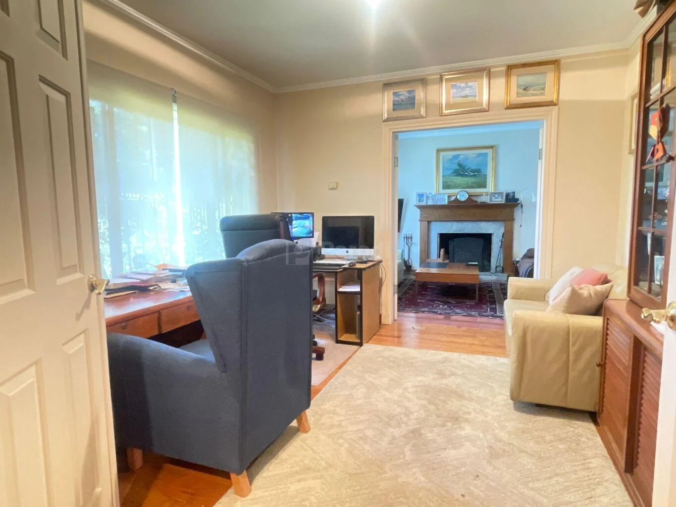 Hall de entrada con puerta de doble hoja, recibidor, baño social. Desde el recibidor ubicado en el centro de la casa, accedemos hacia un lado al Living comedor y hacia el otro lado ingresamos al escritorio y estar.