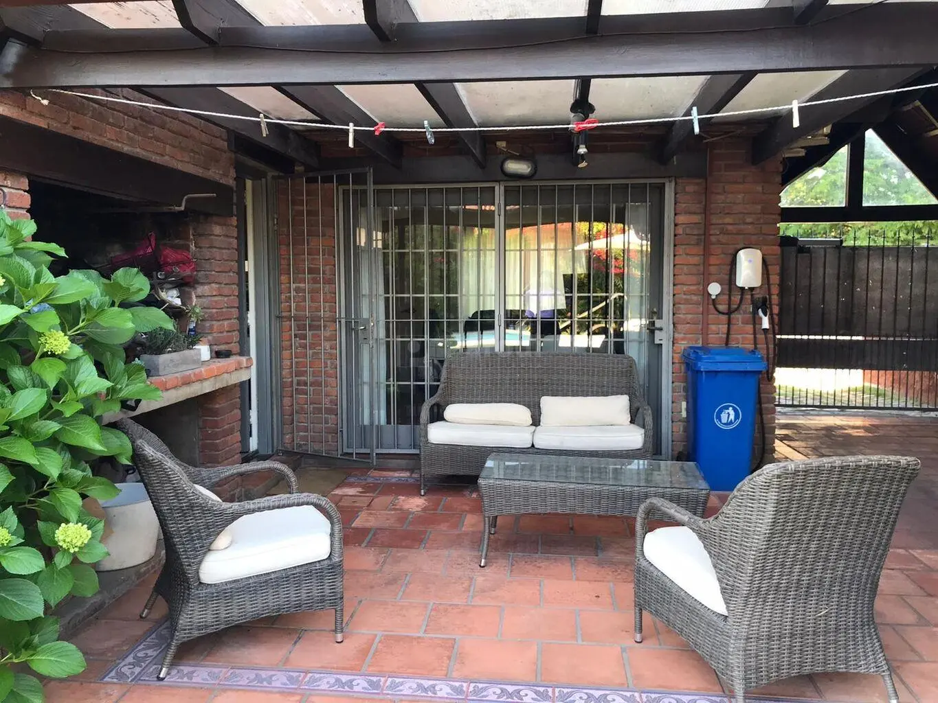 Gran fondo enjardinado con mucho sol. Pisicina climatizada de muy buen tamaño.