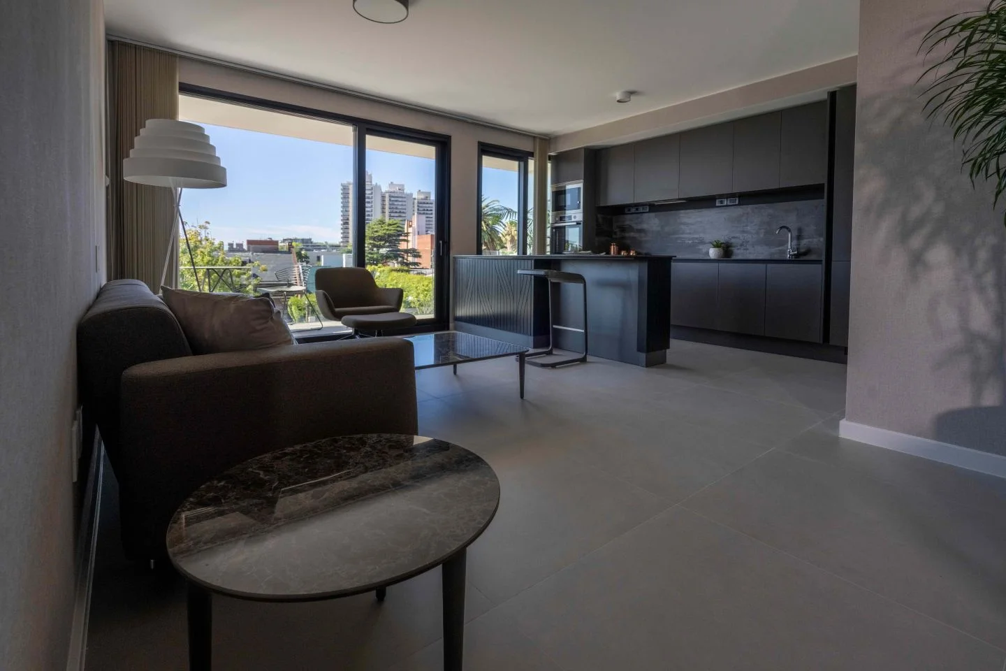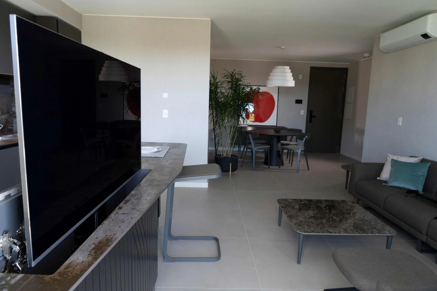 Pisos de porcelanato en cocina y living.