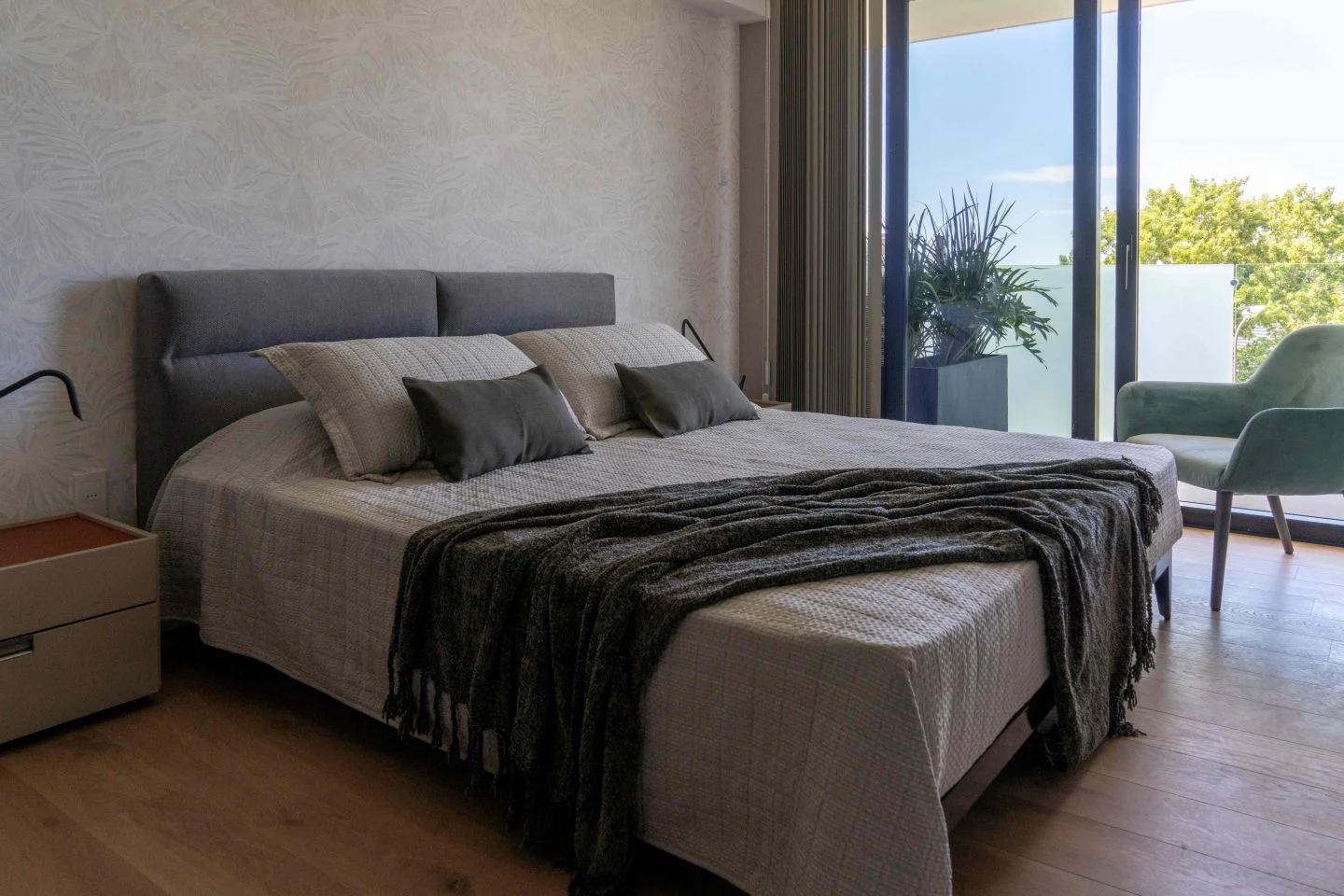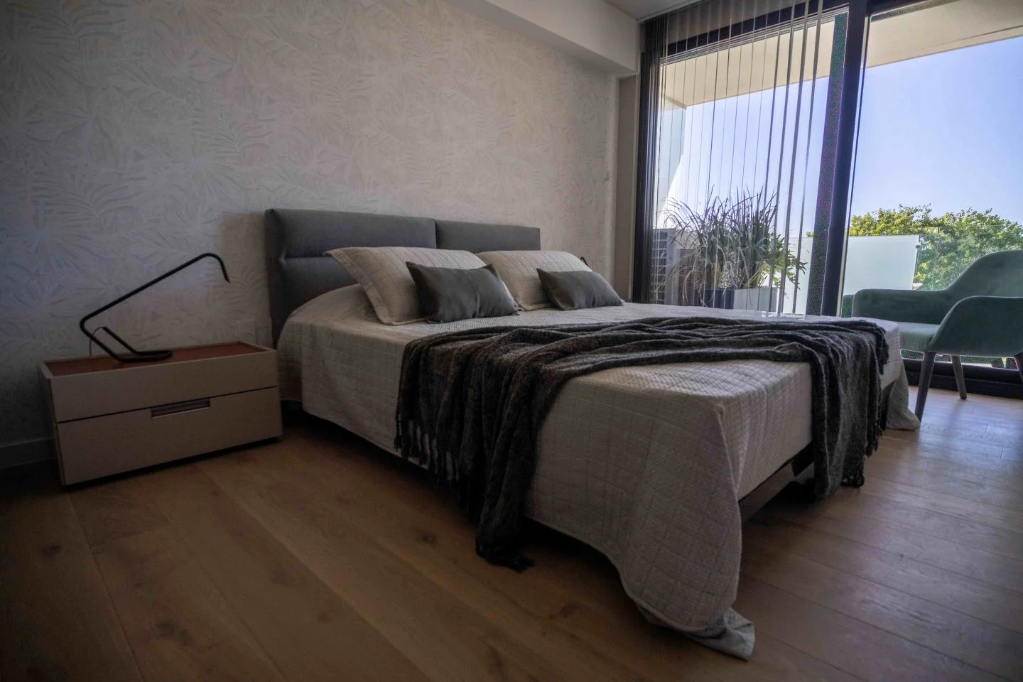 Pisos de terminación madera en dormitorios.