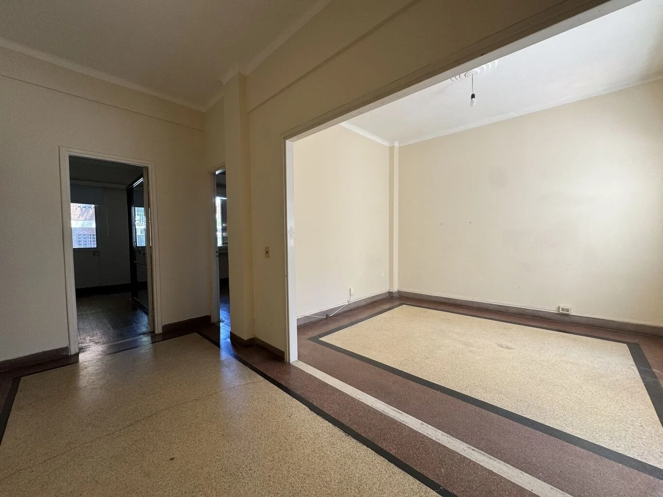 Desarrolla living comedor, 2 dormitorios de muy buen tamaño, 2 baños (uno de ellos completo y otro social), cocina definida y habitación de servicio con posibilidad de utilizar para diversos fines. Aires acondicionados en los dos dormitorios.