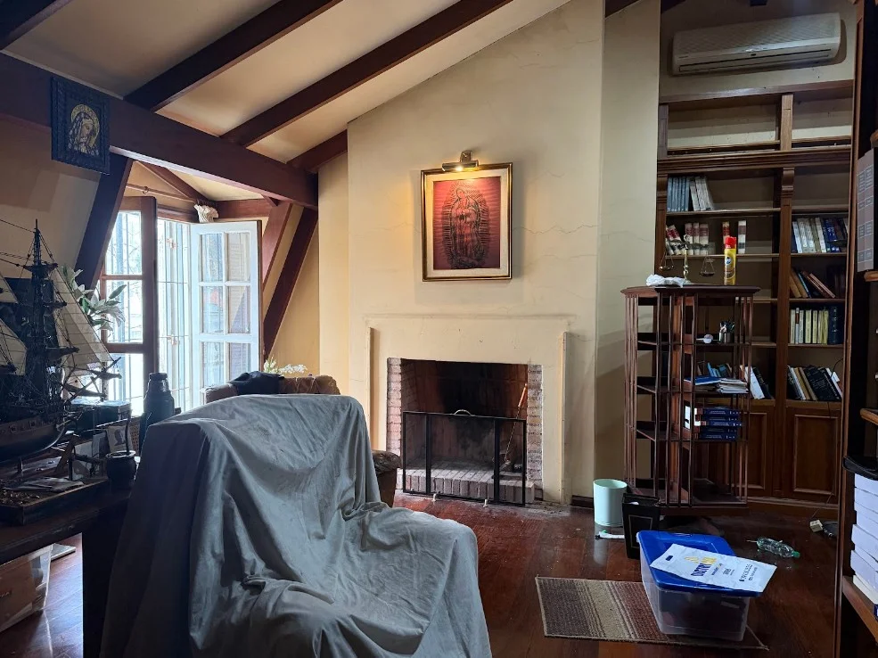Nivel 2: biblioteca con estufa a leña, terraza al frente, un dormitorio y un baño completo, terraza al fondo con acceso a la azotea.
