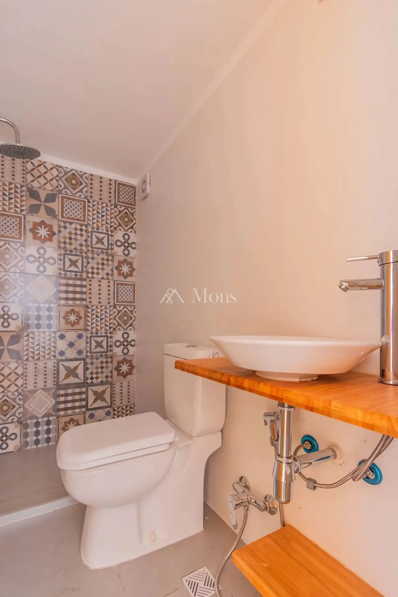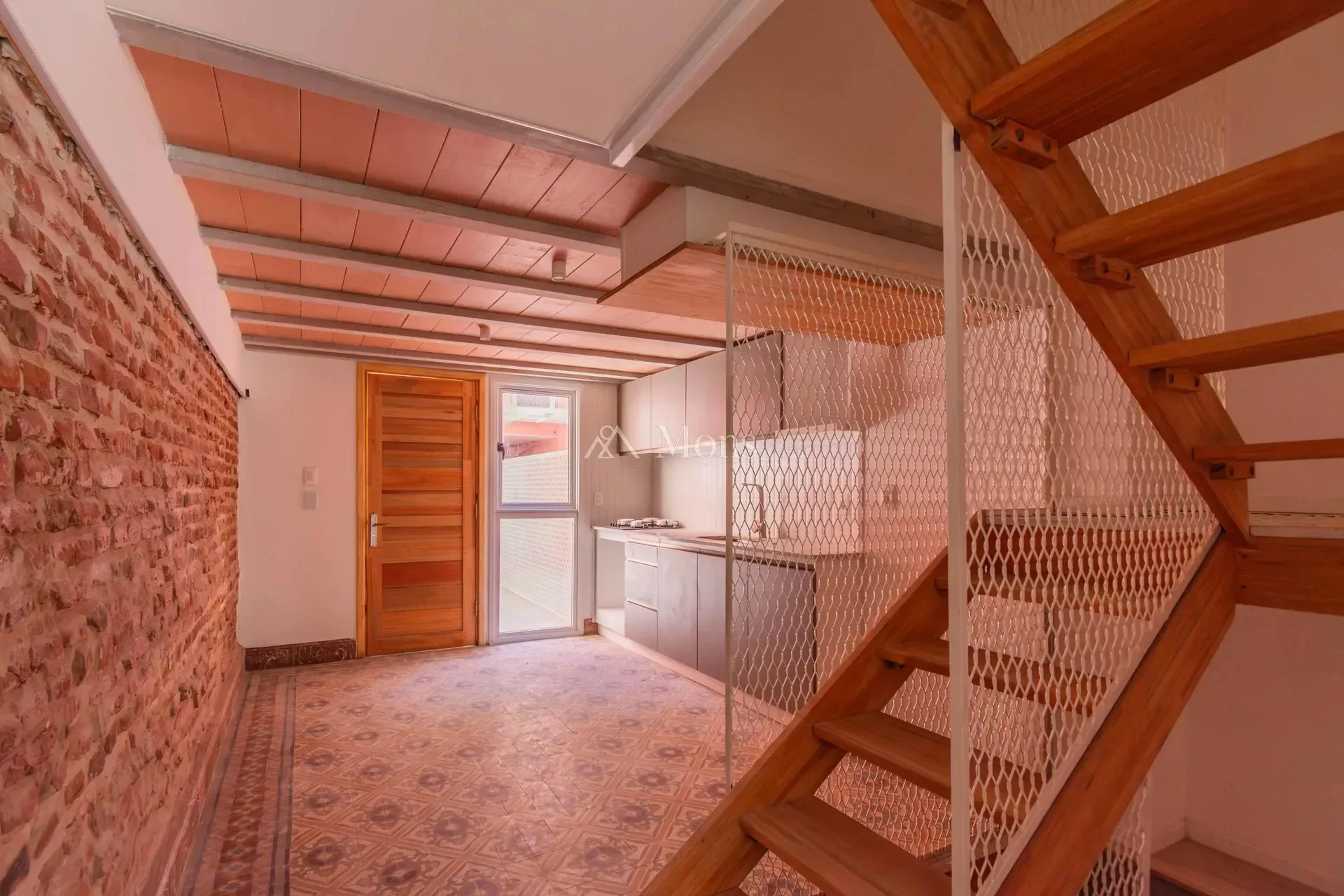 Cuenta con un patio de uso exclusivo que nos da acceso a la entrada del apartamento. Ingresando una amplia cocina, escalera para acceder al sótano y planta alta, living con salida a patio. Baño completo en planta baja. Al tener ambos patios permite el ingreso de luz de manera permanente y buena ventilación.