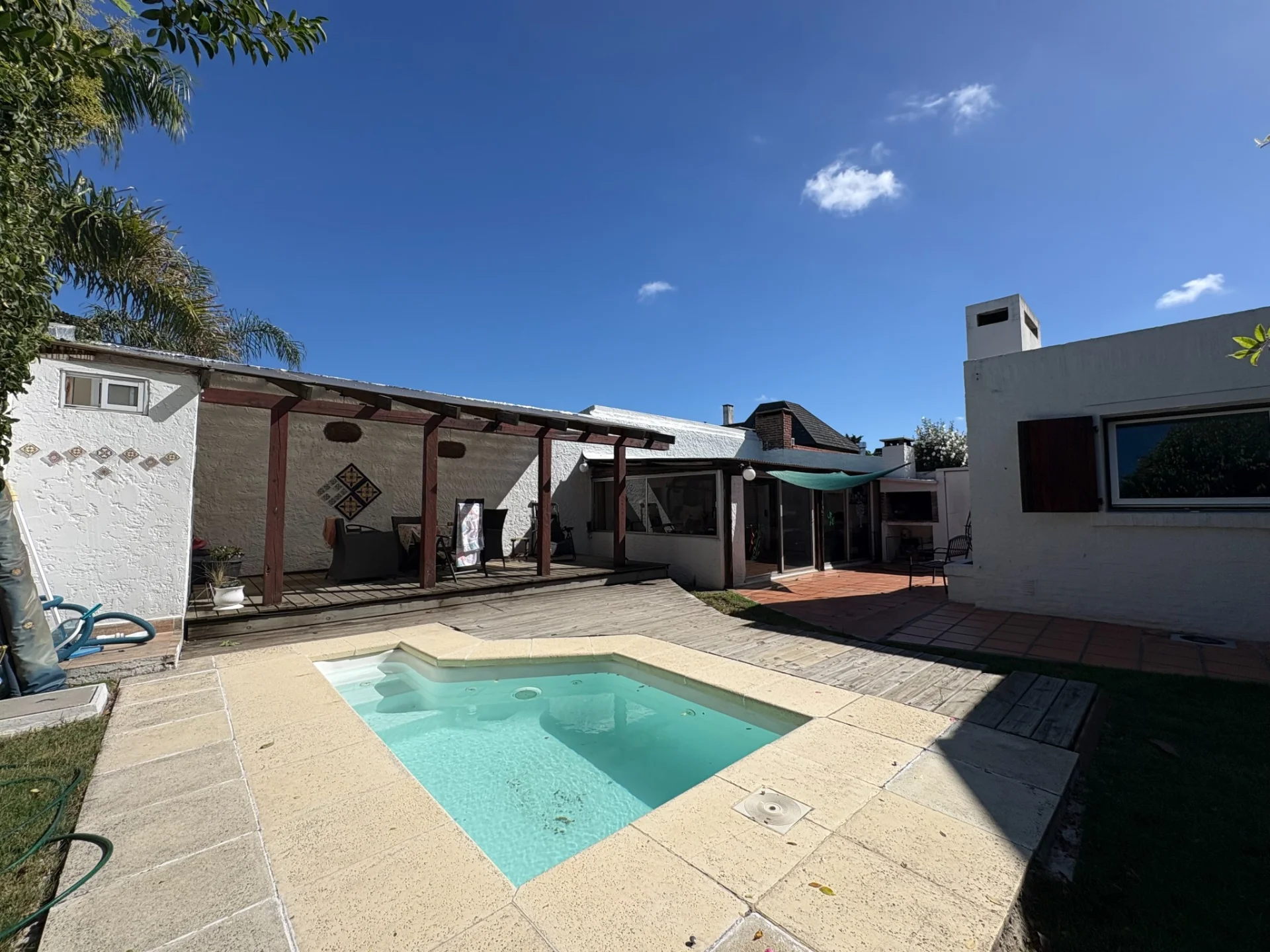 Muy linda casa en una ubicacion privilegiada dentro de Parque Miramar, fondo Norte. Hall de recepcion con despojador y toilette. Amplio living comedor al frente con estufa a leña. Comedor definido con facil acceso al living y cocina. Cocina definida de muy buen tamaño con muy linda isla y unida al estar. Deposito y terraza lavadero. En planta alta, 4 dormitorios. El principal al frente en suite. Los otros dormitorios comparten un baño completo. Muy lindo fondo con barbacoa cerrada, parrillero y baño. Piscina. Calefaccion por caldereta gas. Riego SE DESTACA: UBICACION DENTRO DEL BARRIO - ORIENTACION - CALIDAD CONSTRUCTIVA - TAMAÑO AMBIENTES SOCIALES.