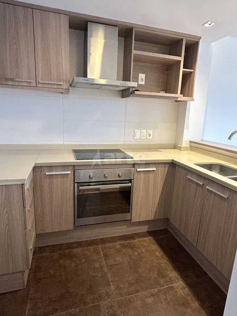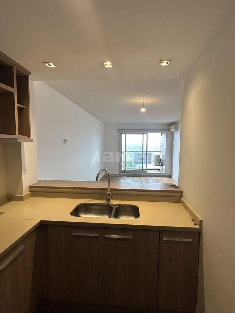 Muy agradable apartamento de moderna arquitectura frente a playa honda. Living comedor con terraza al mar, cocina integrada con placares sobre y bajo mesada equipada con anafe, horno y campana.