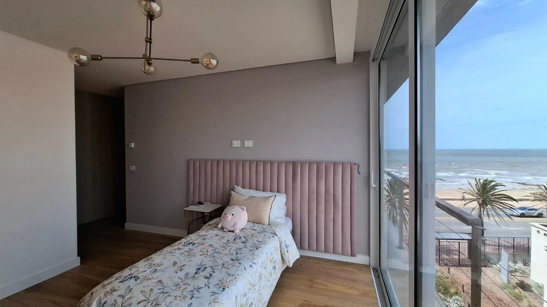 Unidad 403. Espectacular planta de 200m2 construidos más 26m2 de terraza en equina con vista a la Rambla. Pasillo de entrada con baño social. Living comedor en esquina y estar, ambos con salida a la terraza. Cocina semi definida, doble mesada con muebles aéreos y bajo mesada, anafe, horno y campana y placard tipo alacena. Pequeño dormitorio en suite con salida al balcón. 3 dormitorios en suite, el principal con vestidor y vista la mar. Todos los ambientes cuentan con aire acondicionado.