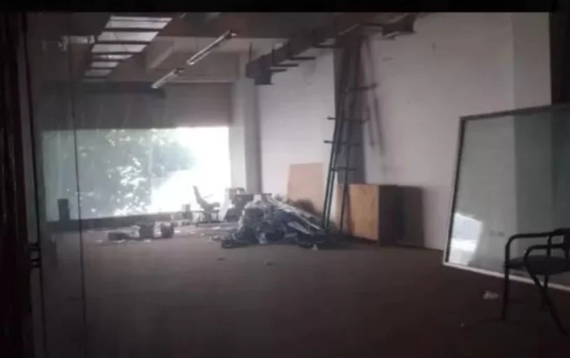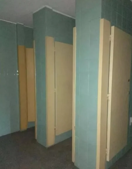 El mismo no tiene separaciones ni columnas, tiene una kitchenette, tres baños para caballeros y tres baños para damas.