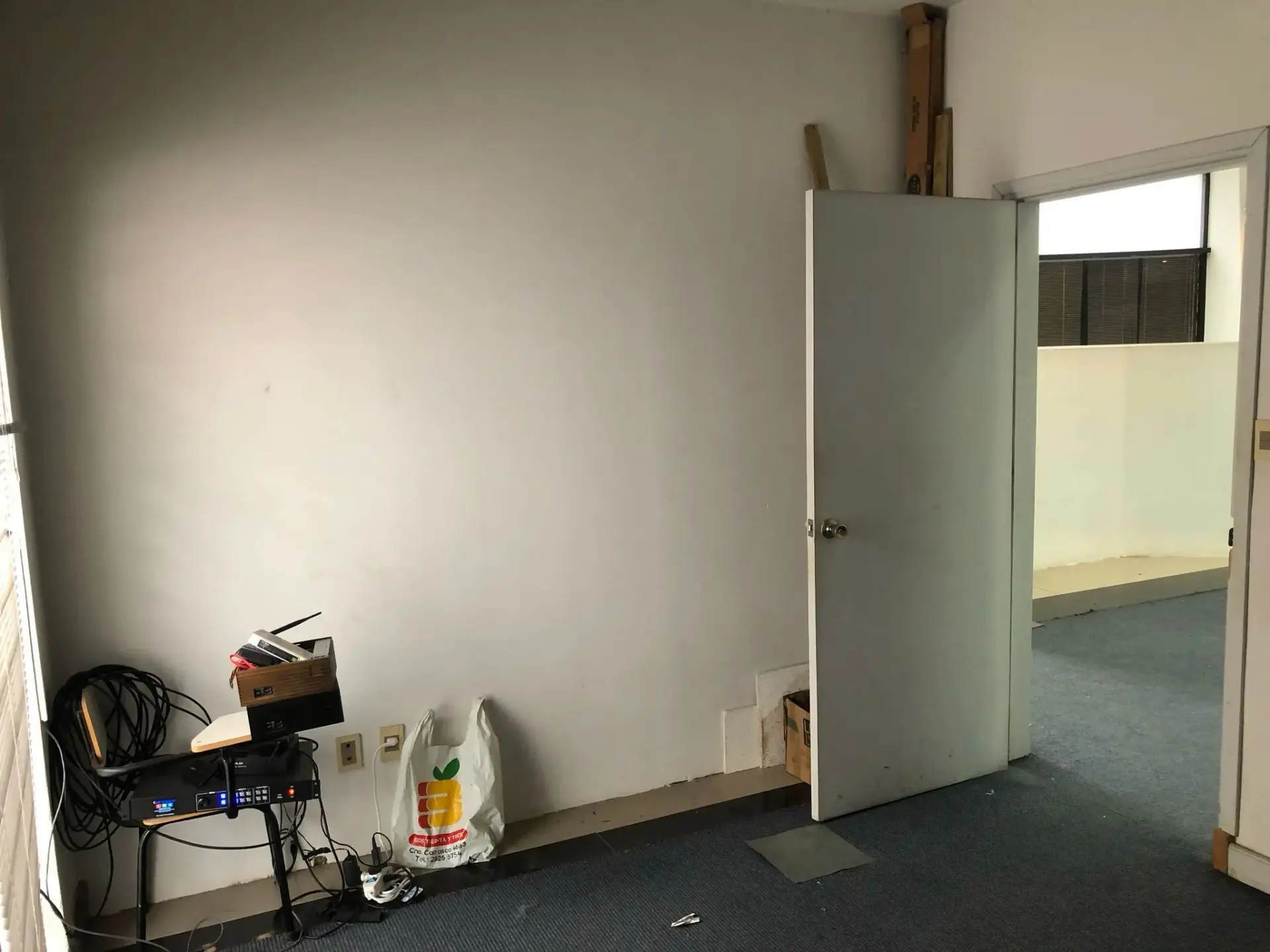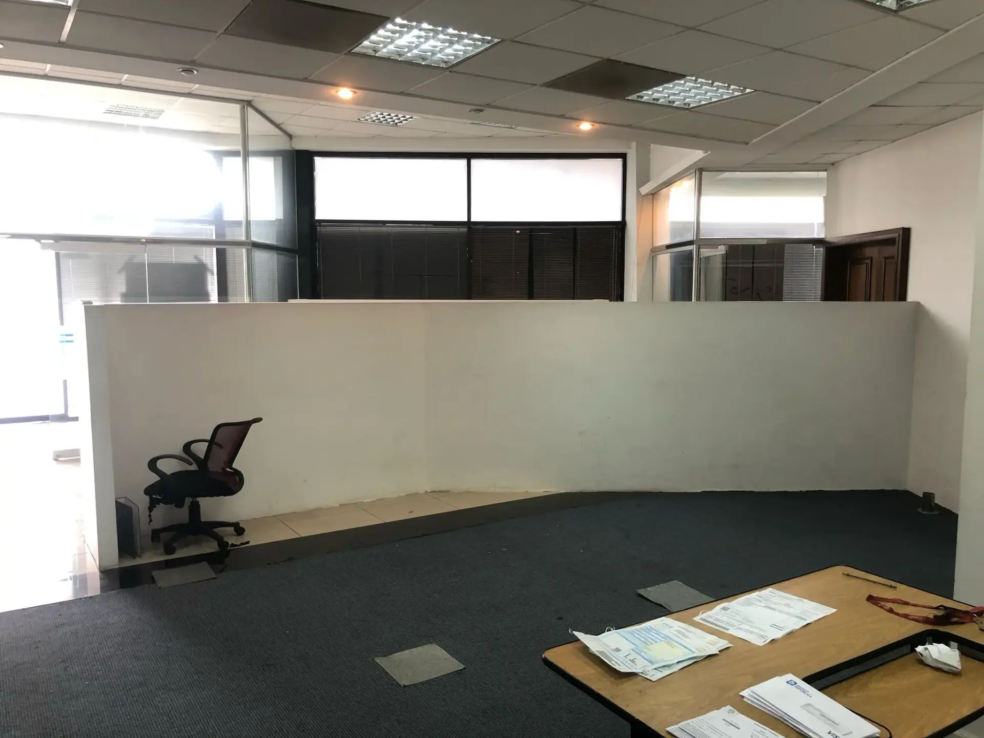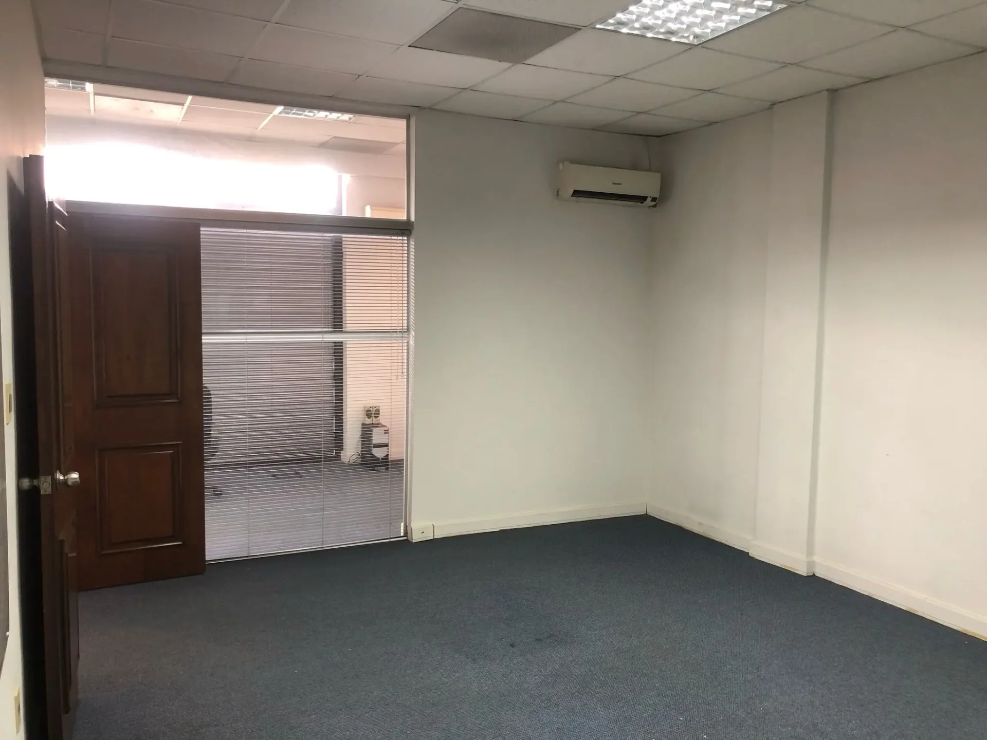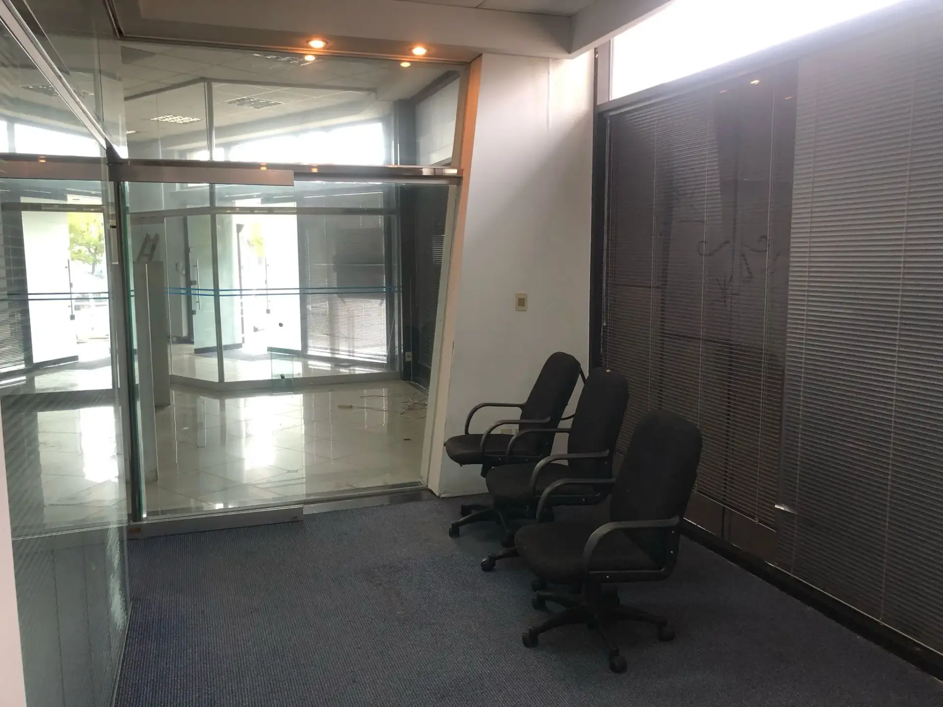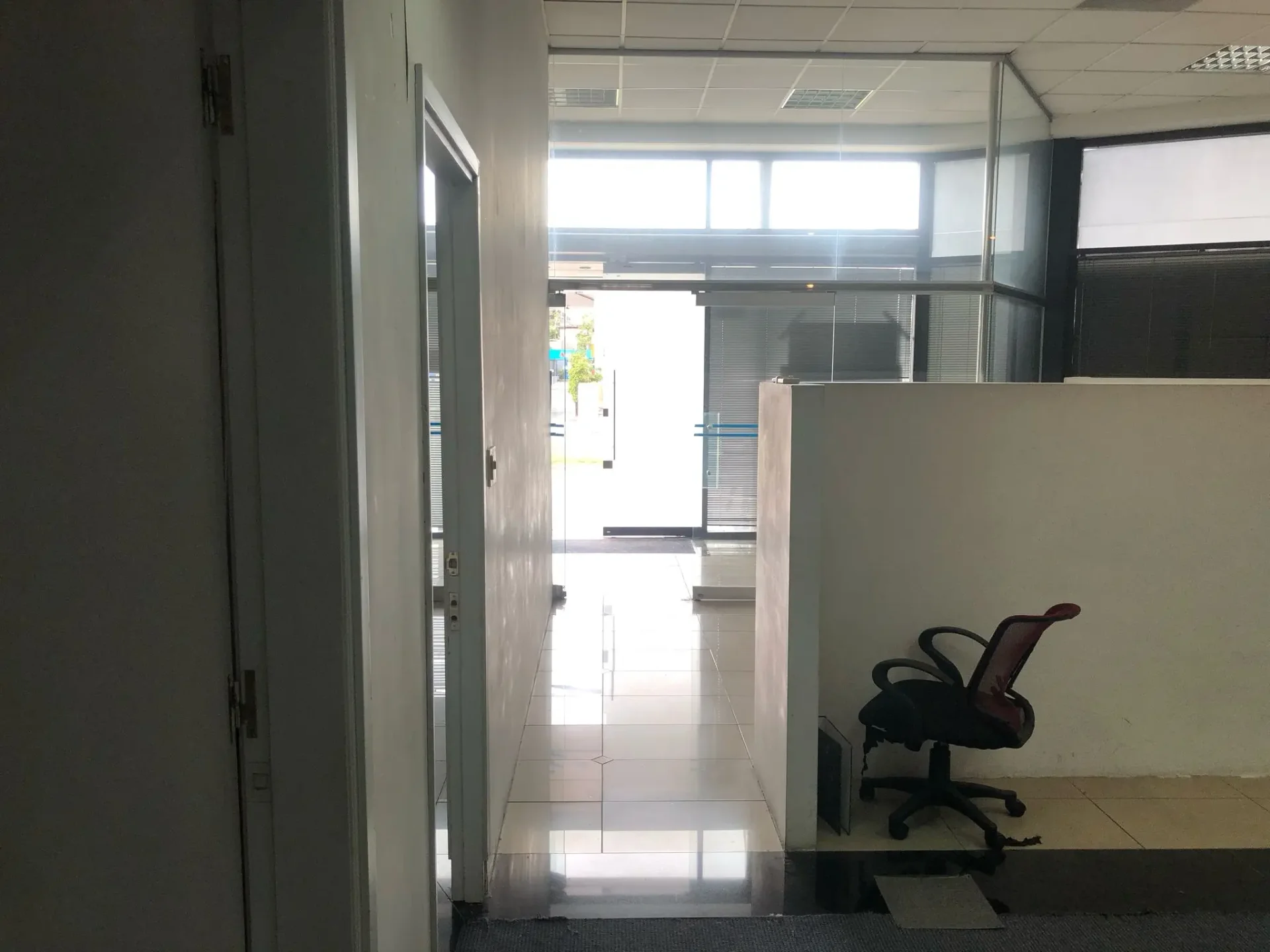 Gran sala de reuniones, 4 salas privadas, 3 ambientes amplios, 2 baños, cocina definida y un estacionamiento privado hacia el fondo de la propiedad.