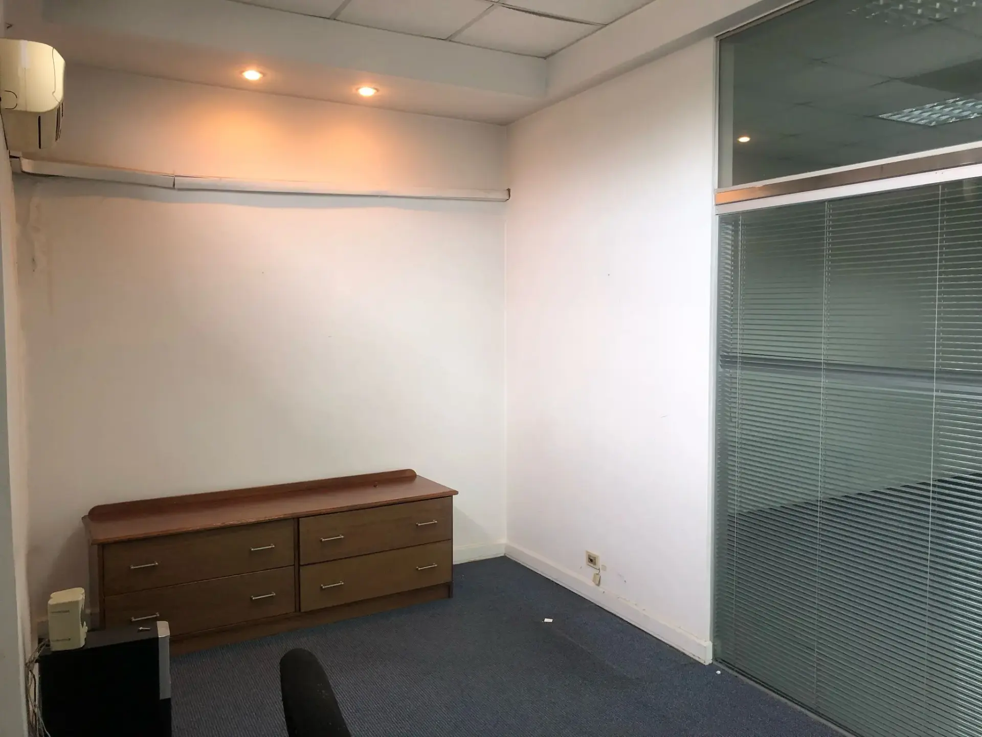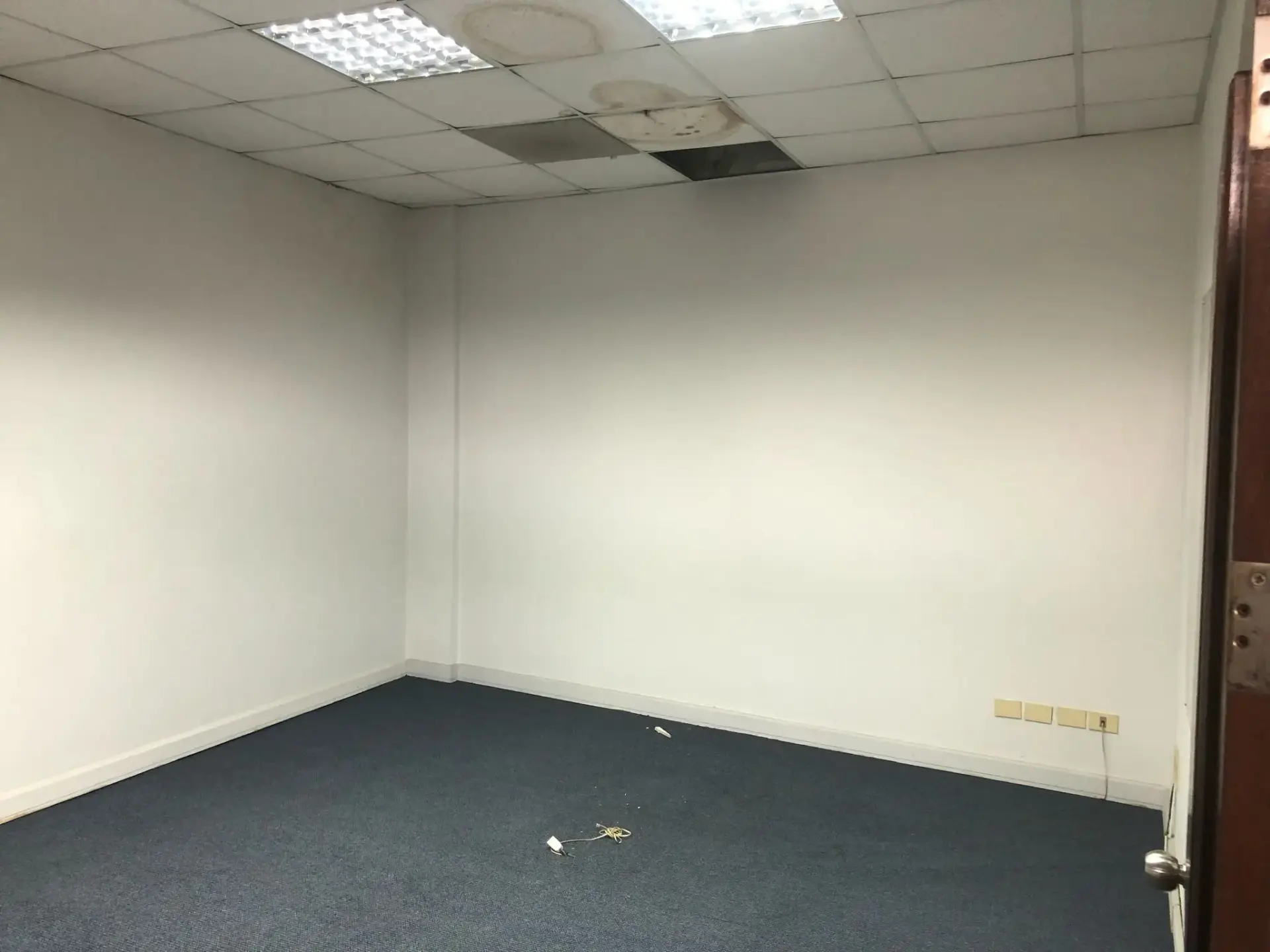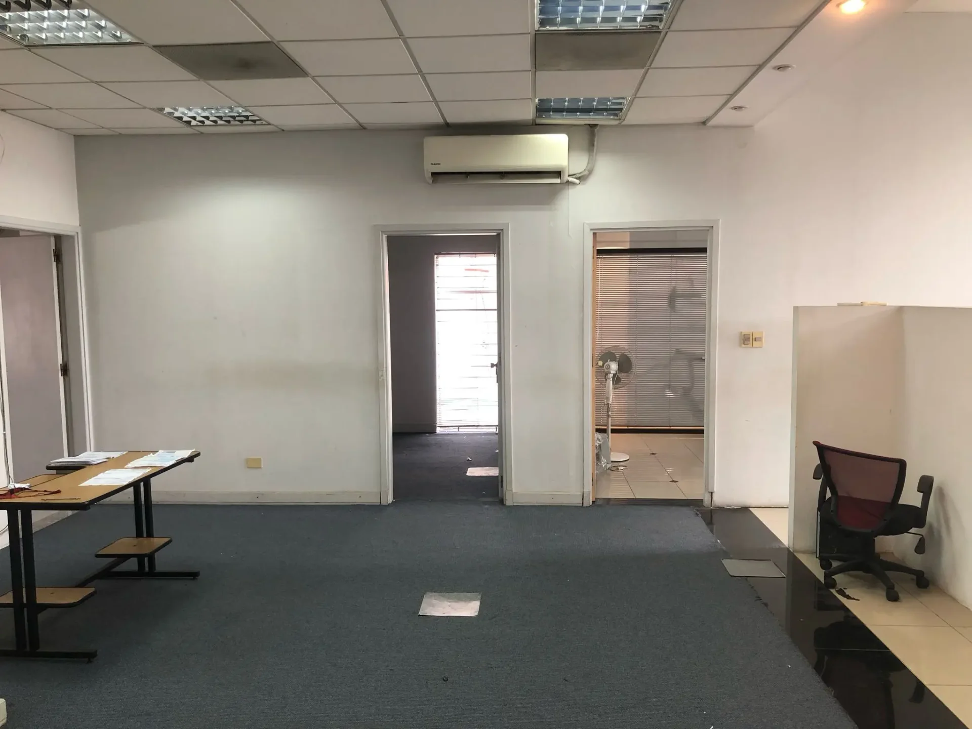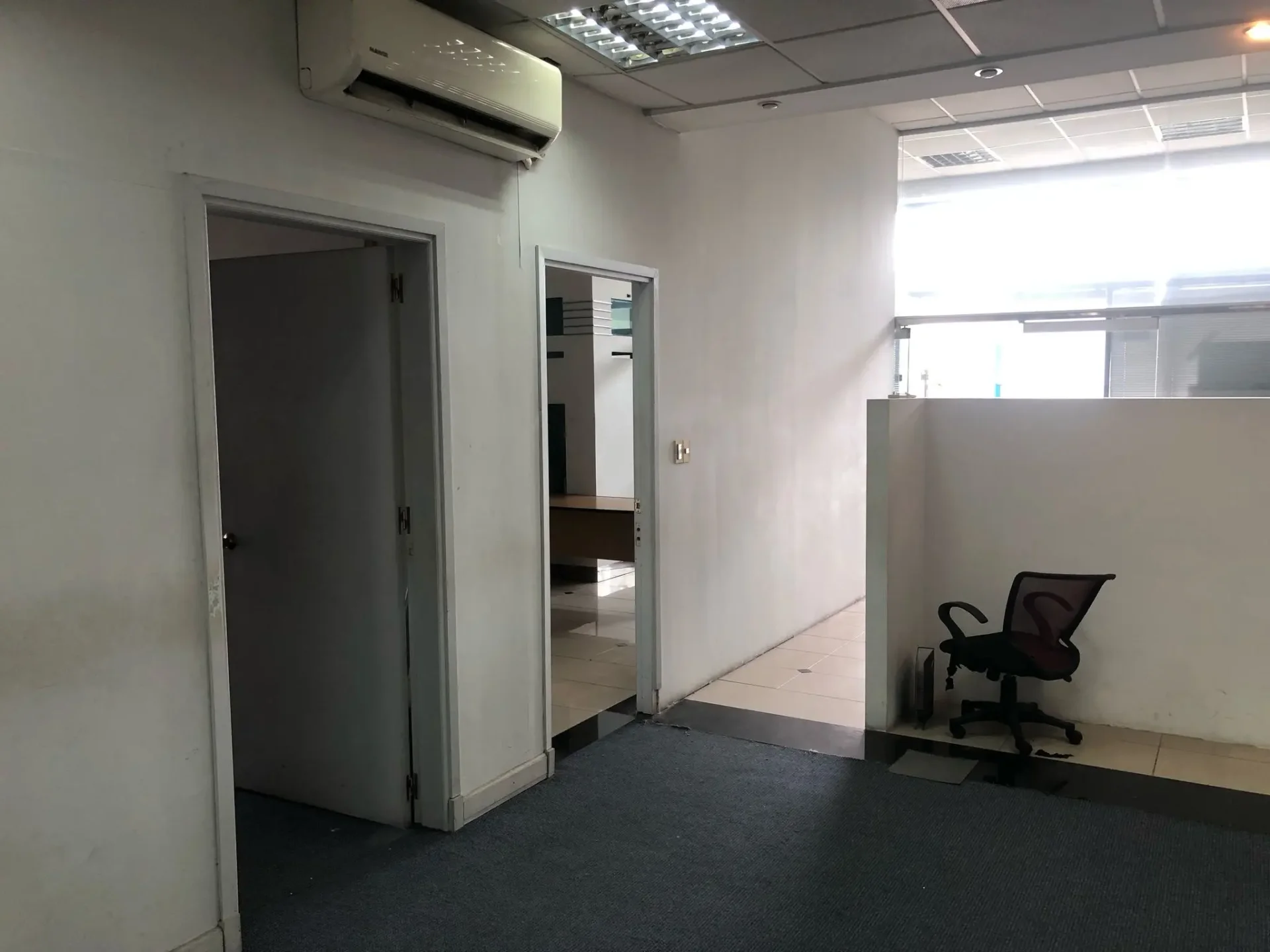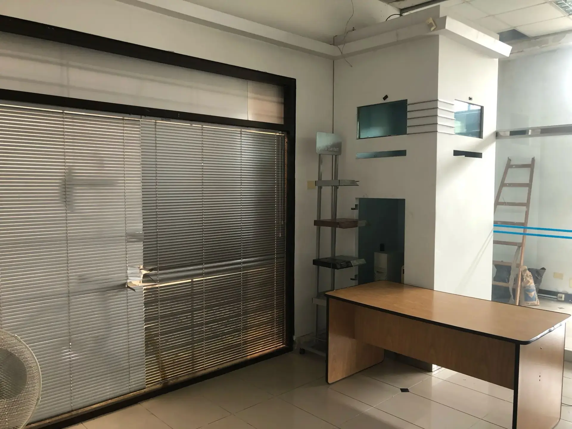 Gran sala de reuniones, 4 salas privadas, 3 ambientes amplios, 2 baños, cocina definida y un estacionamiento privado hacia el fondo de la propiedad.