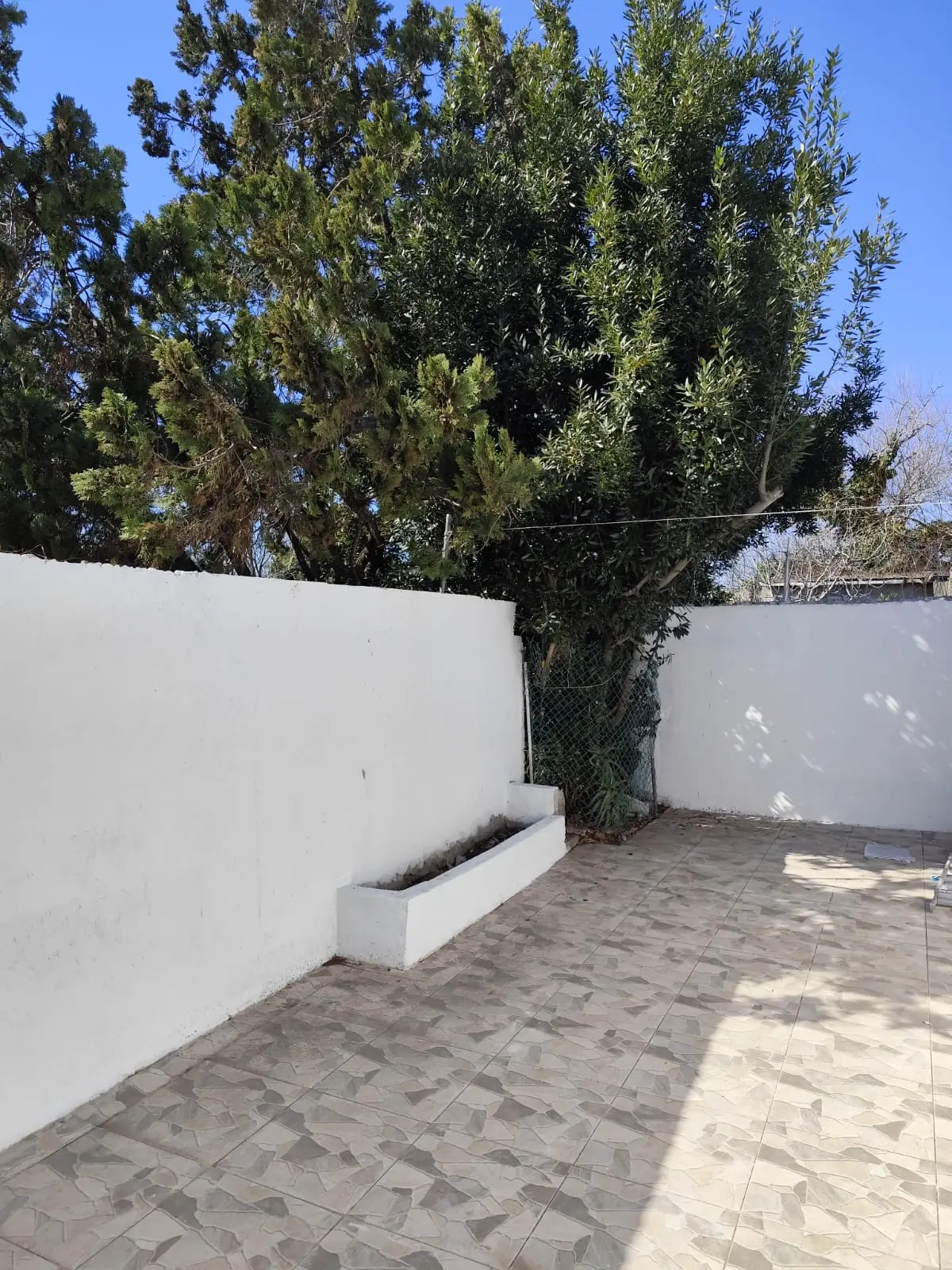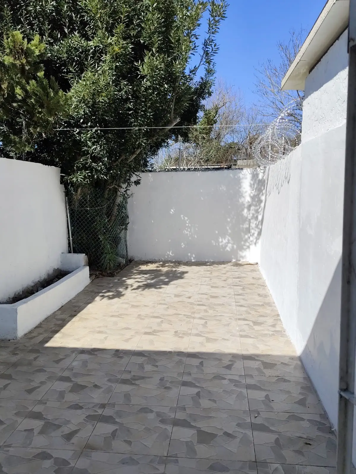 Amplio Patio recién reciclado con piso de porcelanato. Luminoso con un laurel. Ideal para descansar, armar un almuerzo o cena al aire libre. Se puede poner medio tanque. Muros recién edificados con seguridad de alambre de púas.