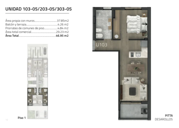 Apto 103 / 1 Dormitorio U$S 160.000.-Apto 104 / 1 Dormitorio U$S 160.000.-Apto 105 / 1 Dormitorio U$S 160.000.-