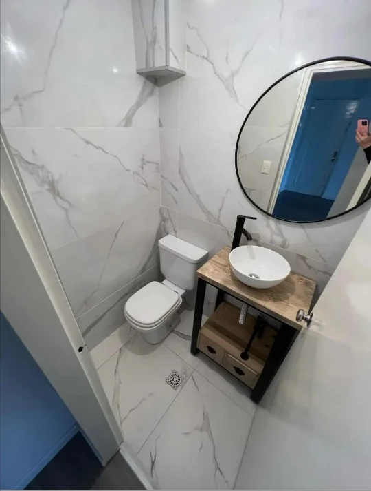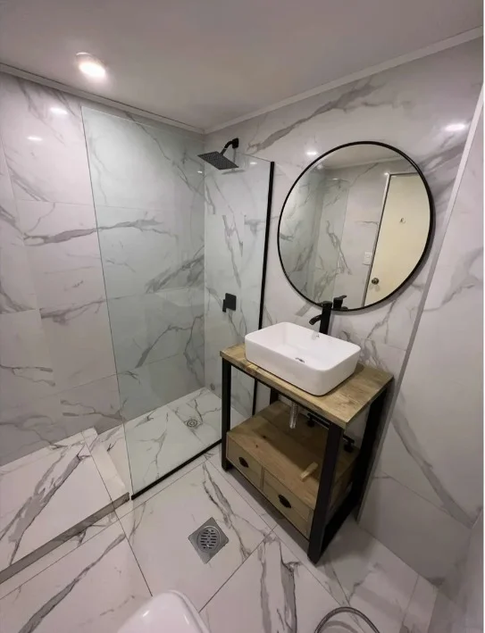 Dos baños completos, uno de ellos con mampara de vidrio.