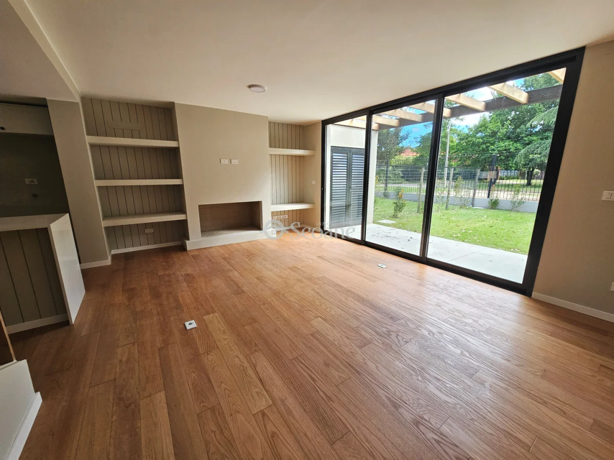 Esta unidad se compone de living-comedor con estufa a leña, baño social y cocina integrada a comedor diario, equipada con horno, anafe y campana. A la salida hacia un amplio fondo verde cuenta con una pergola con parrillero. En planta alta 3 dormitorios y 2 baños completos, el principal en suite con vestidor. En una segunda planta cuarto dormitorio o playroom con salida a dos terrazas. Lavadero.