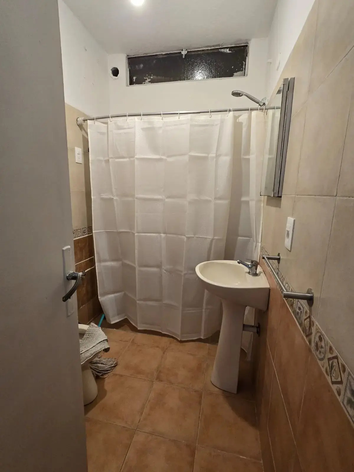 Baño completo con conexion para lavarropas. se cuelga ropa en roldana.