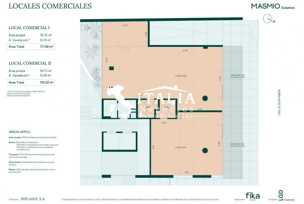 Se alquila local a estrenar impecable de 115.22 m2 con un área propia de 99.73 m2 y un área de uso cexclusivo sobre la vereda de 15.49 m2 con un frente de unos 7 metros.