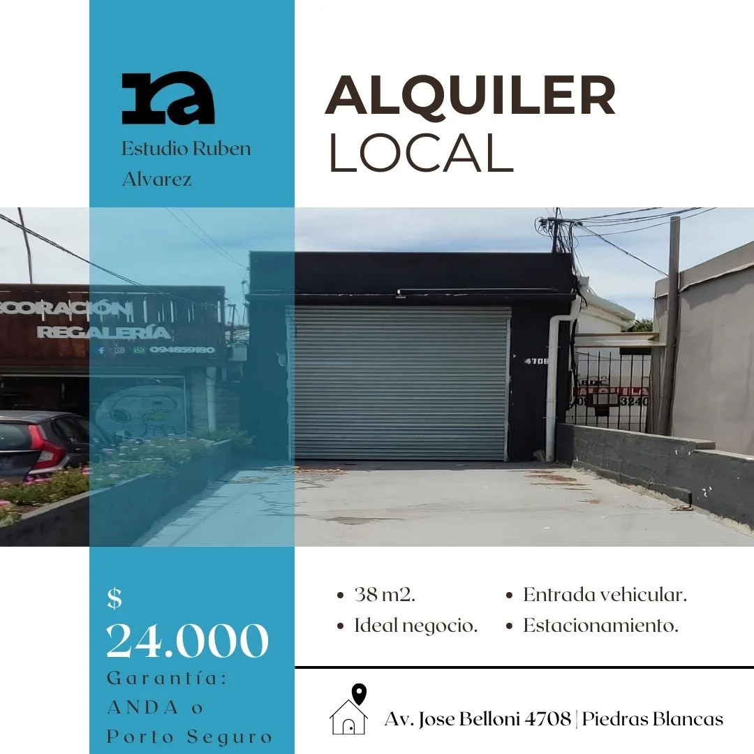 Local comercial de 38 m² con construcción de paredes de material y techo de isopanel. Entrada para vehículo y estacionamiento al frente. Ideal para negocio.Frente a Av. José Belloni 4708, casi Cno. Repetto.Excelente punto comercial.Frente a Feria Piedras BlancasPróximo a parada ómnibus