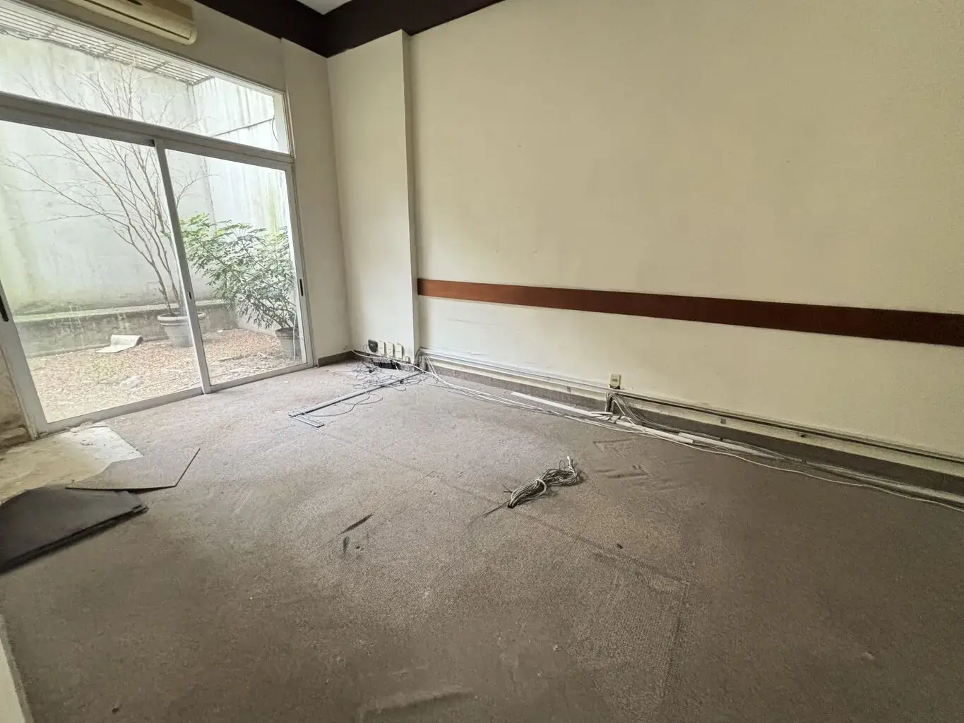 La distribución incluye múltiples ambientes, incluidos amplio sector con salida a la calle, oficinas al fondo, una bóveda equipada con caja fuerte y cofres fort, tres baños y kitchenette. Dispone además de un patio al fondo que aporta luz y ventilación.