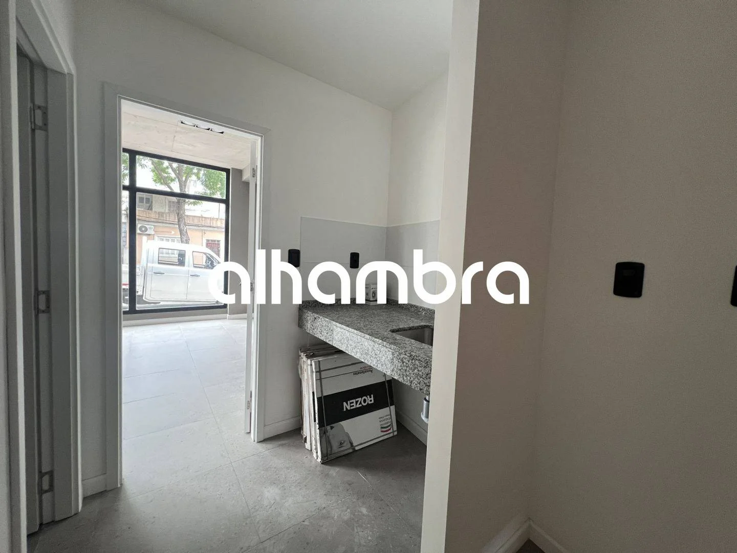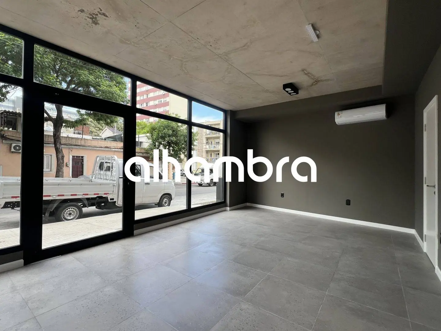 Local comercial al frente en Edificio a estrenar en la calle Monte Caseros, buen metraje con aire acondicionado instalado, baño y cocina.
