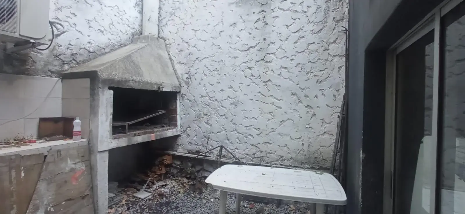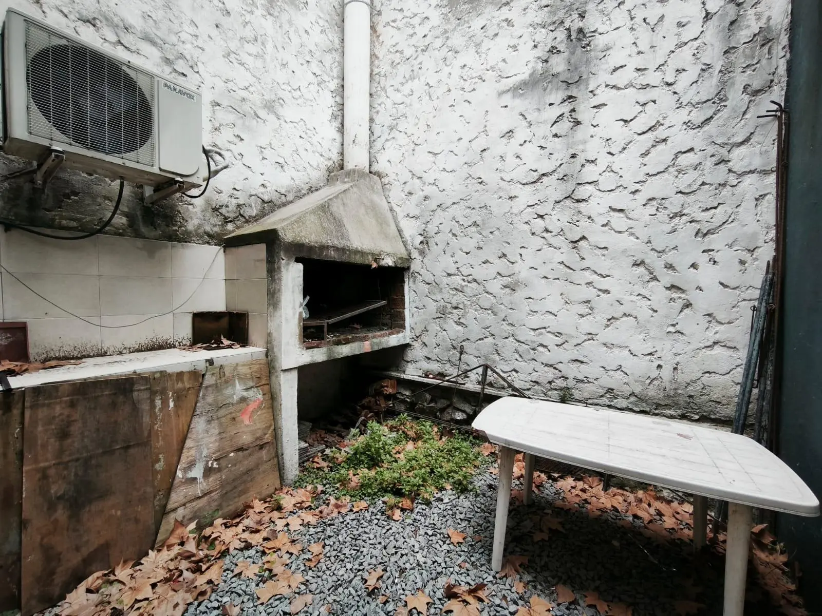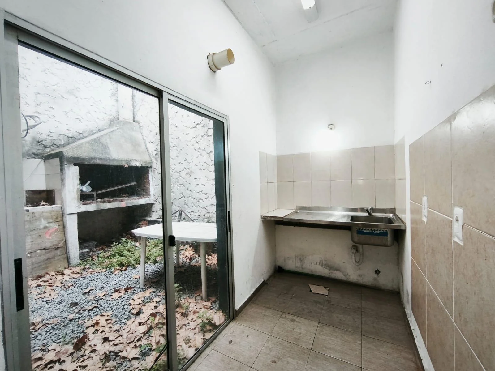 Contrafrente con cocina y patio con parrillero.