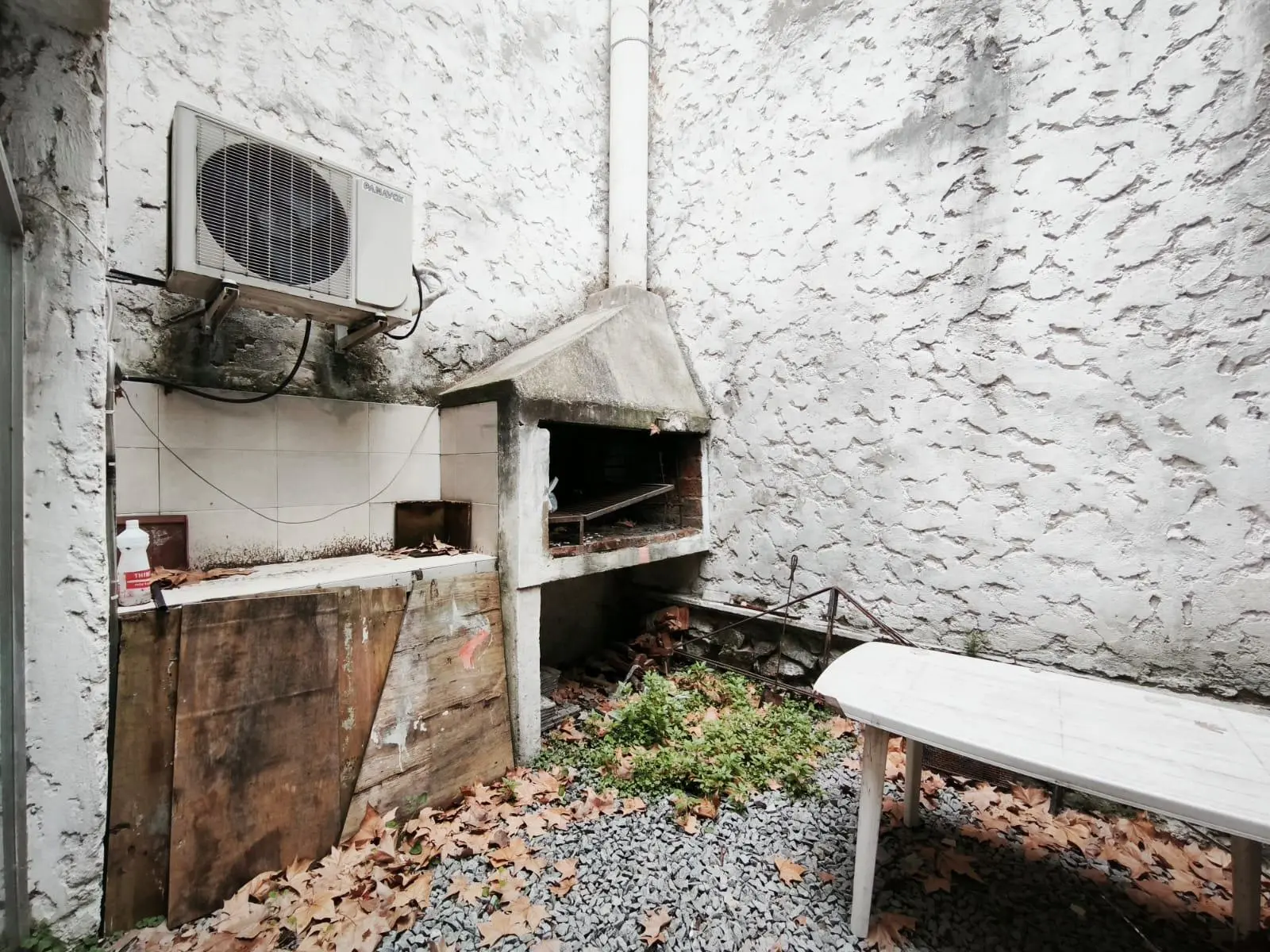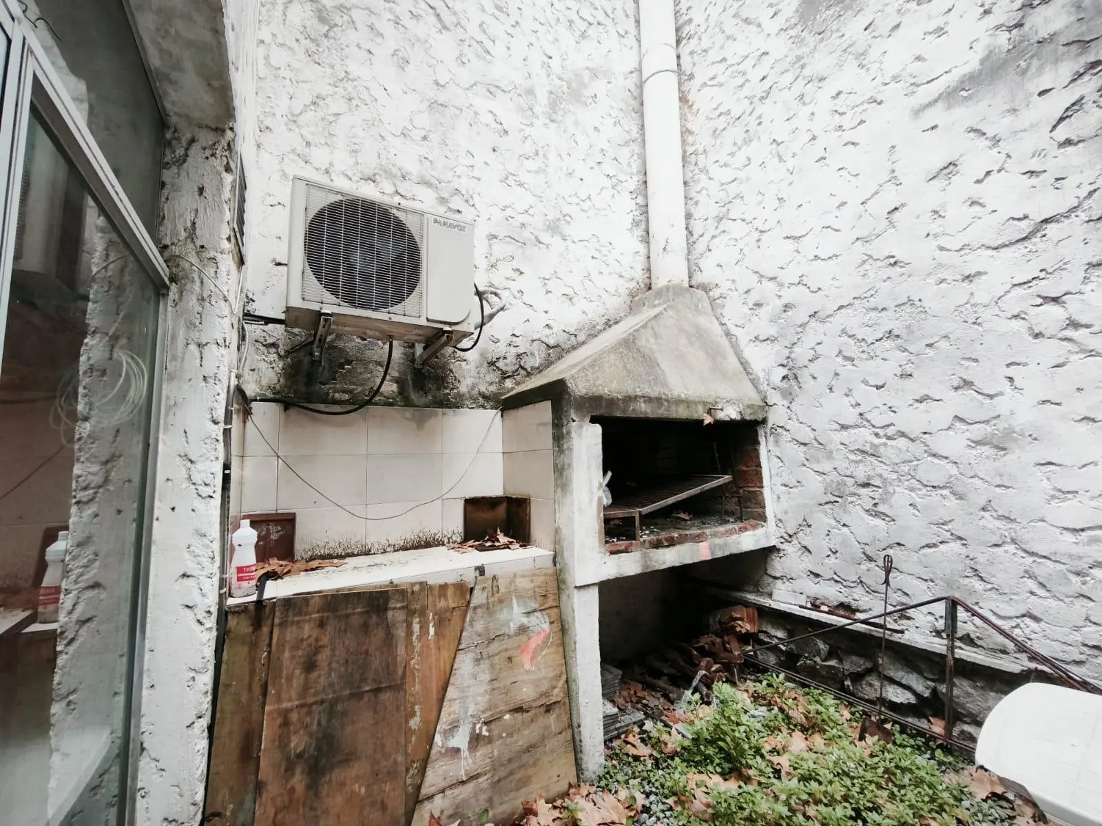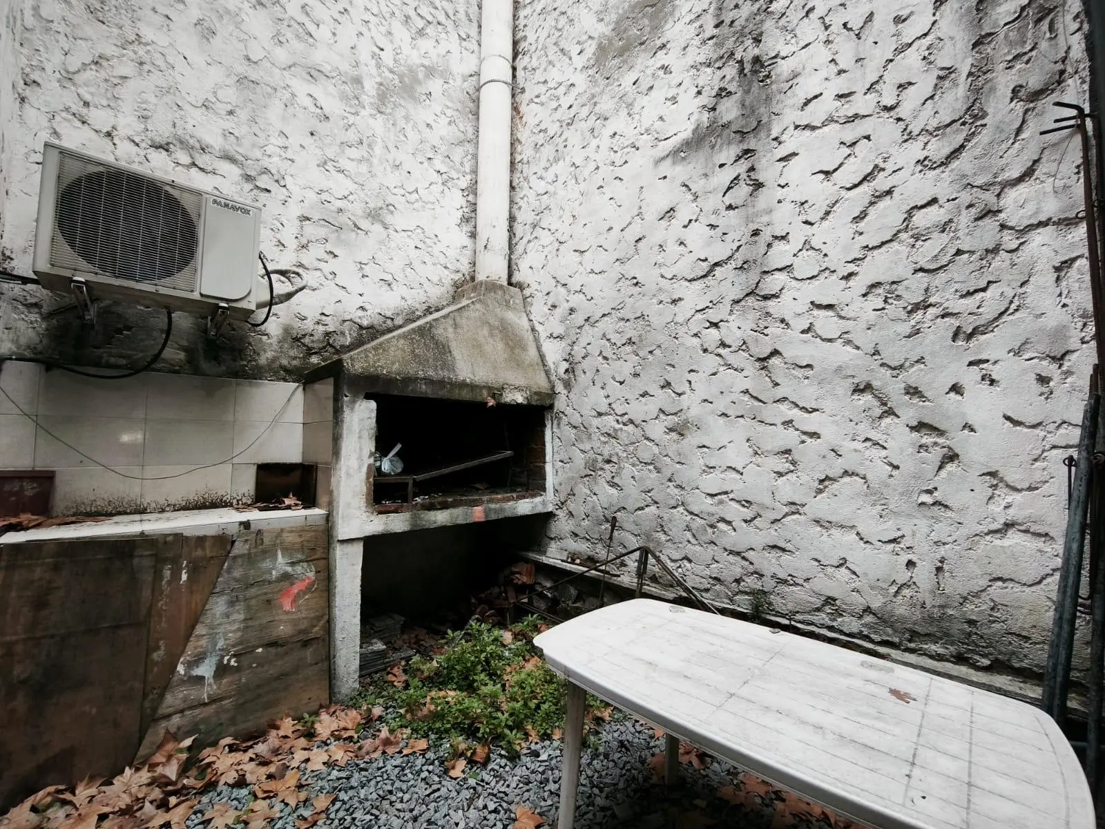 Contrafrente con cocina y patio con parrillero.