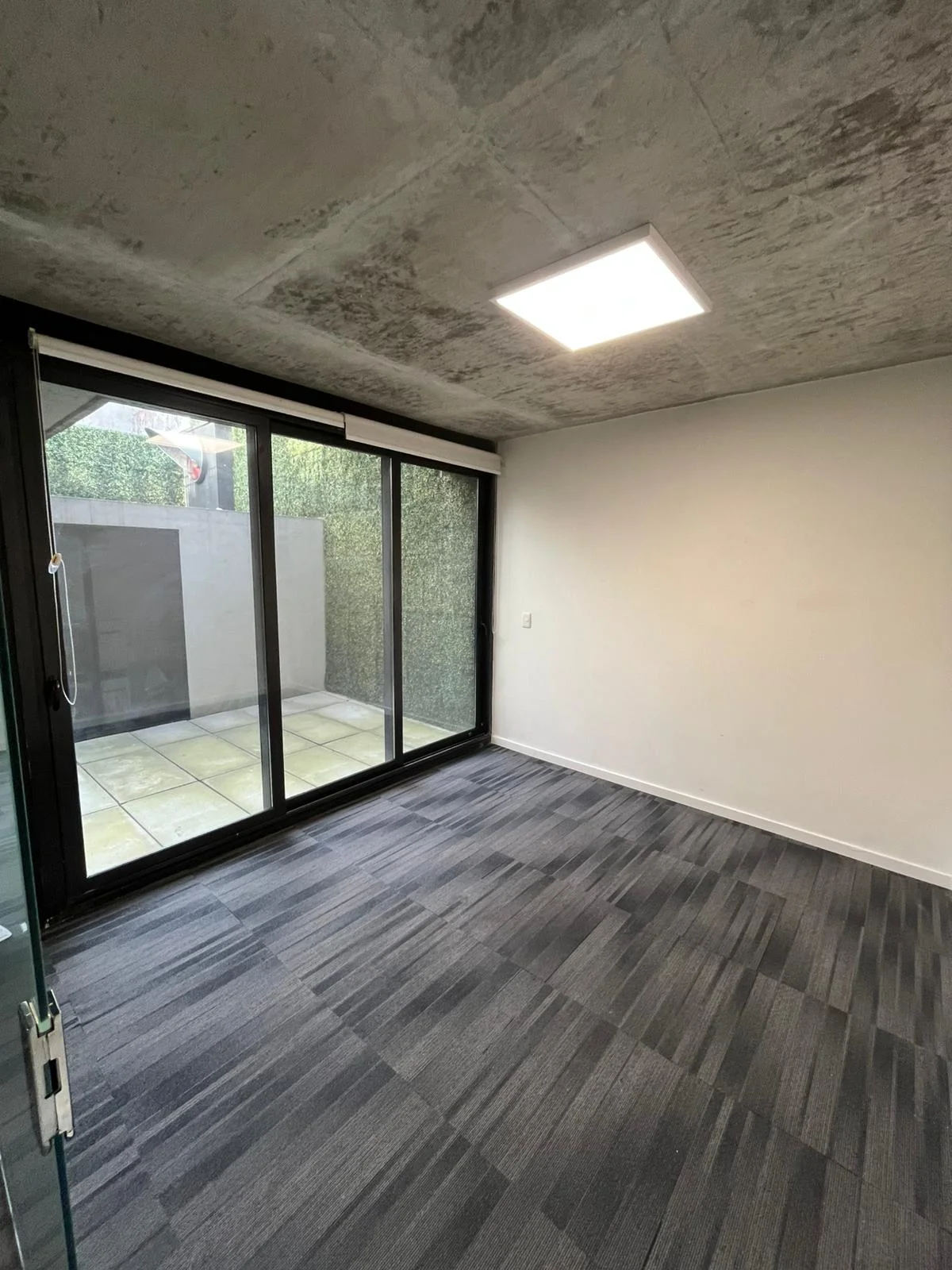 Amplia oficina dividida en 3 privados con salida a un patio privado y soleado que permite privacidad! Cocina definida y baño completo.