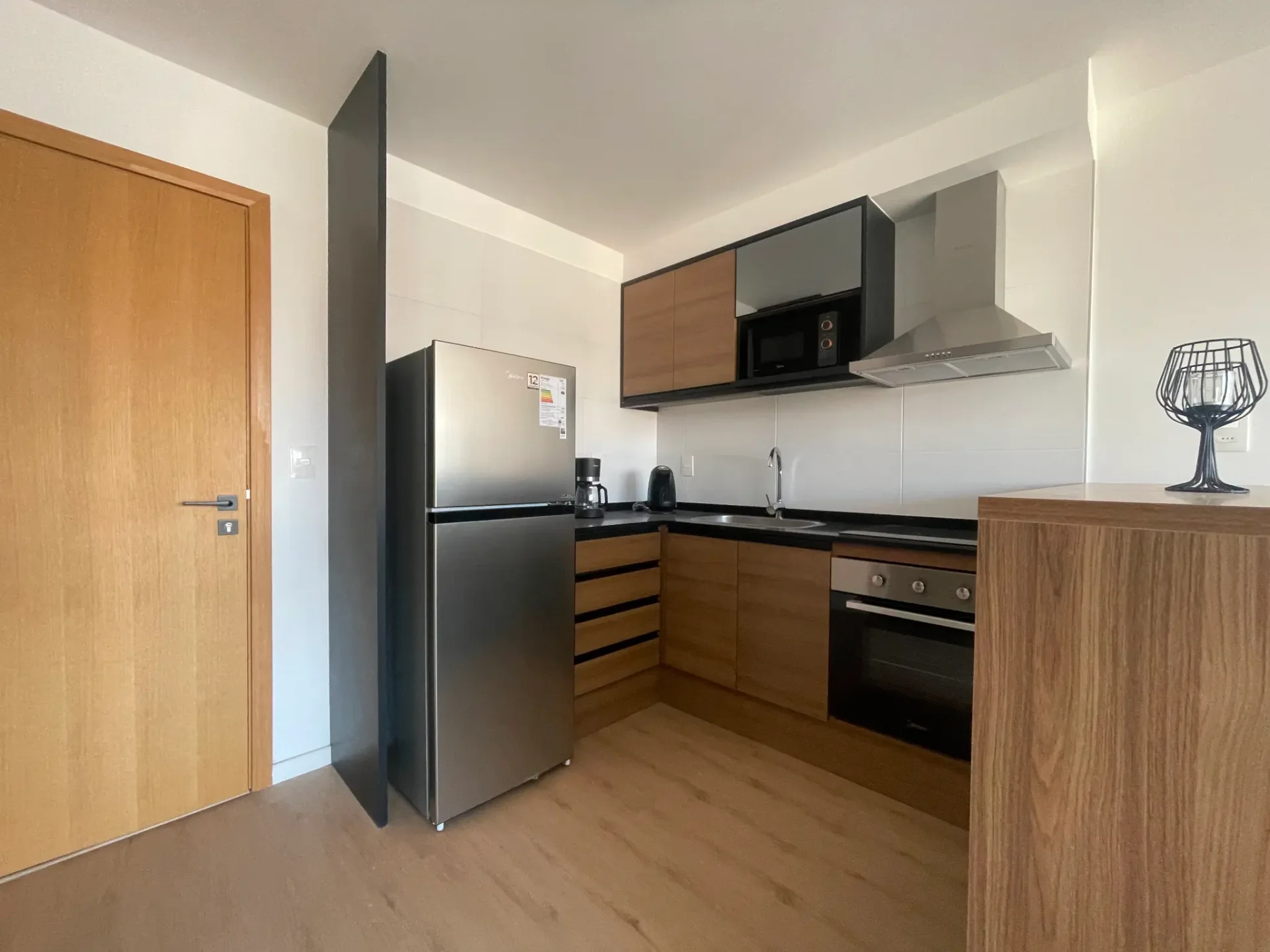 Con orientación norte, tanto el living como el dormitorio reciben luz natural durante todo el día, enmarcando una vista despejada que aporta amplitud y serenidad al espacio. El ambiente principal integra cocina, comedor y estar en un diseño funcional, ideal para vivir y recibir. El dormitorio, también al frente, continúa la sensación de apertura y calidez.