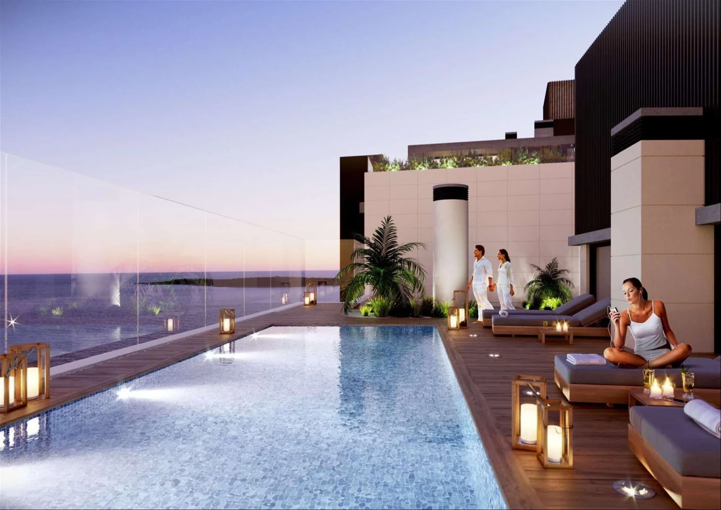 * PISCINA CLIMATIZADA A NIVEL DE LA AZOTEA CON VISTA PANORAMICA AL MAR