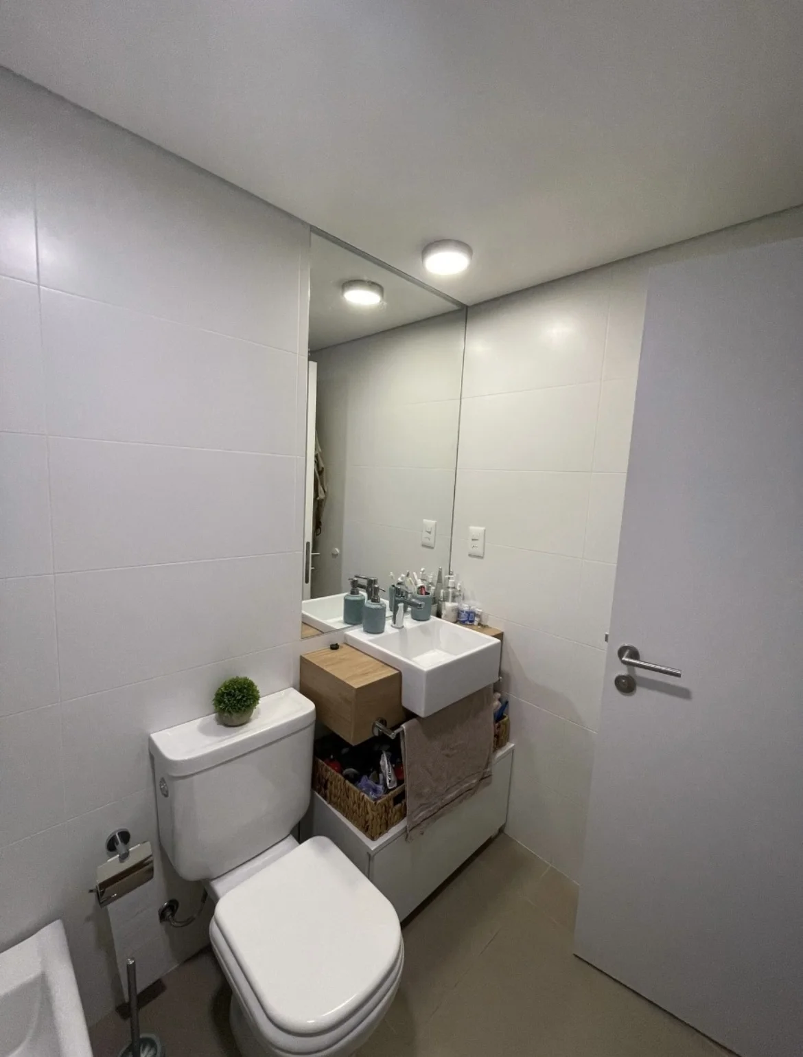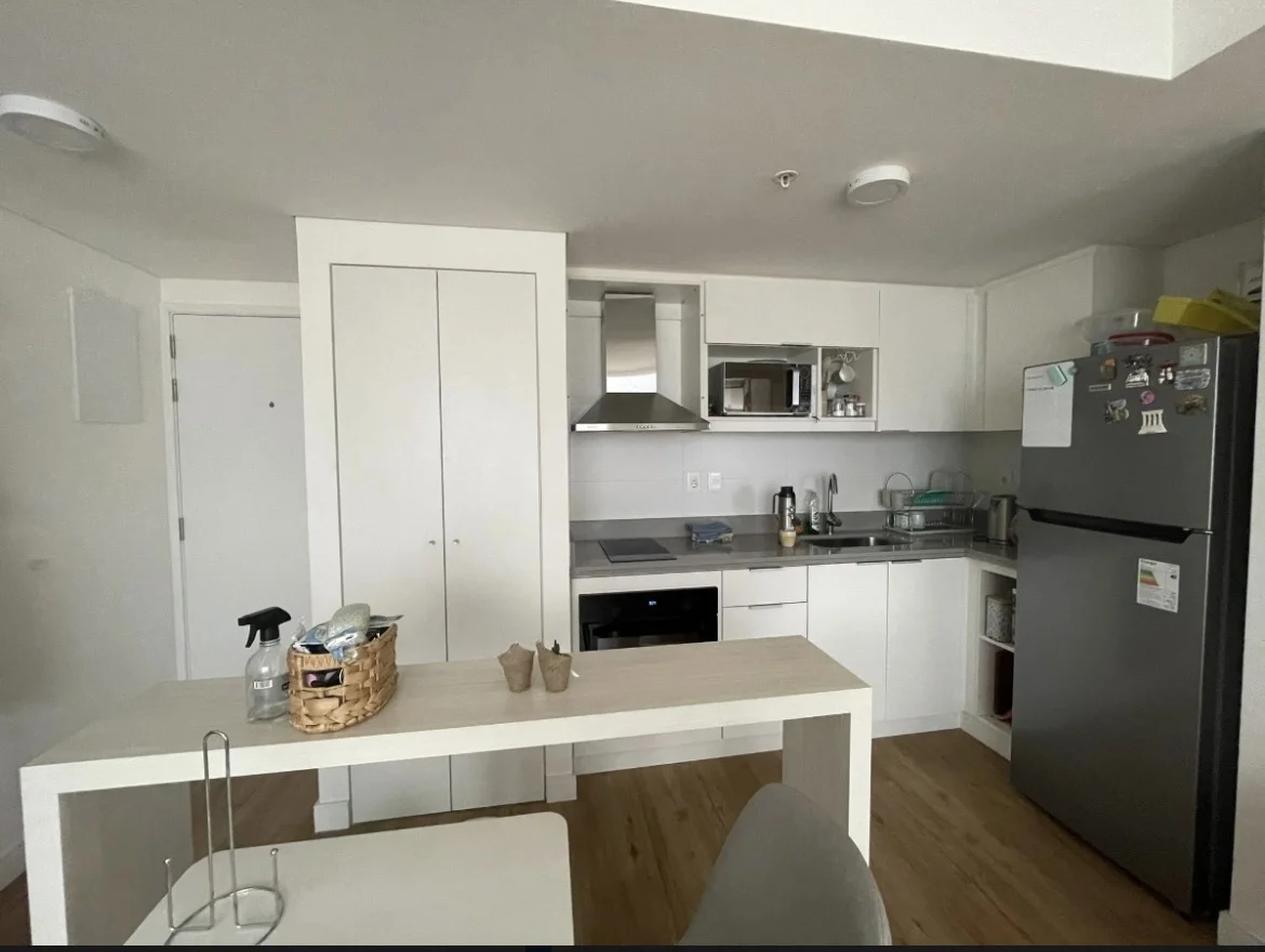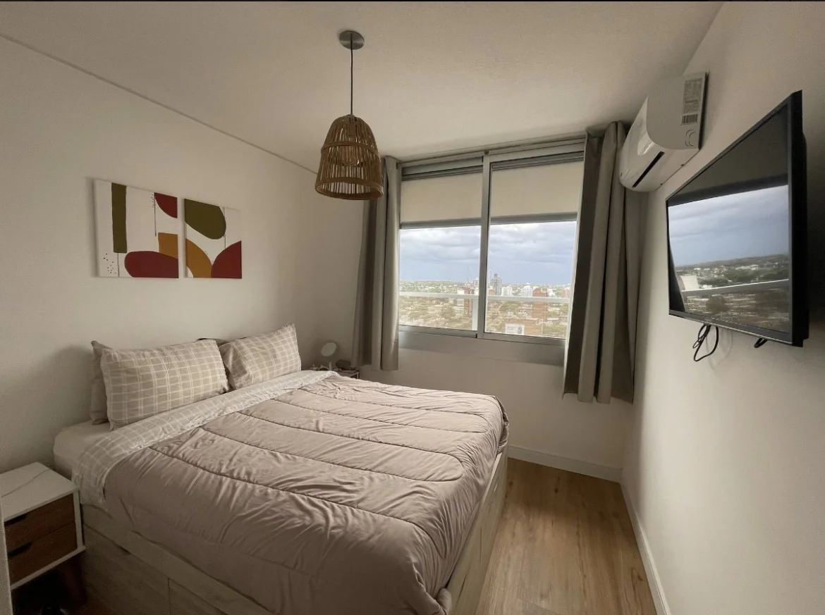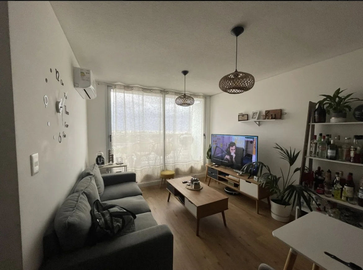 litros. Dormitorio con aire acondicionado y baño completo con mampara. Cochera para un auto. Frente al centro comercial Plaza Italia. El edificio cuenta con barbacoas y parrilleros, lavandería y seguridad las 24 horas. Gastos comunes $ 3.300. Garantías Porto,Sura, Mapfre.
