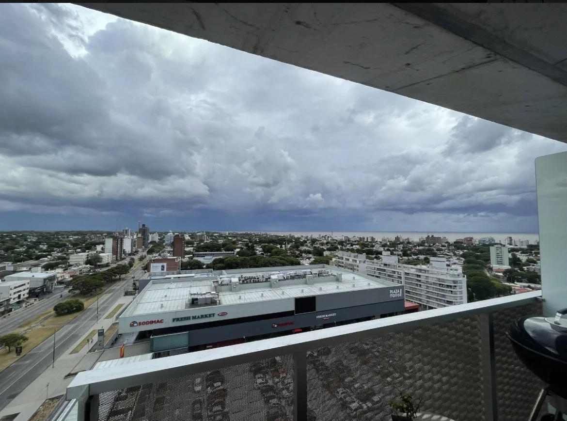 Divino y luminoso apartamento en Malvin, en perfecto estado . Piso 14 con hermosa vista. Living comedor con aire acondicionado,acceso a terraza de 5 metros y grandes ventanales. Cocina integrada equipada con horno eléctrico, anafe y campana. Calefón de 80