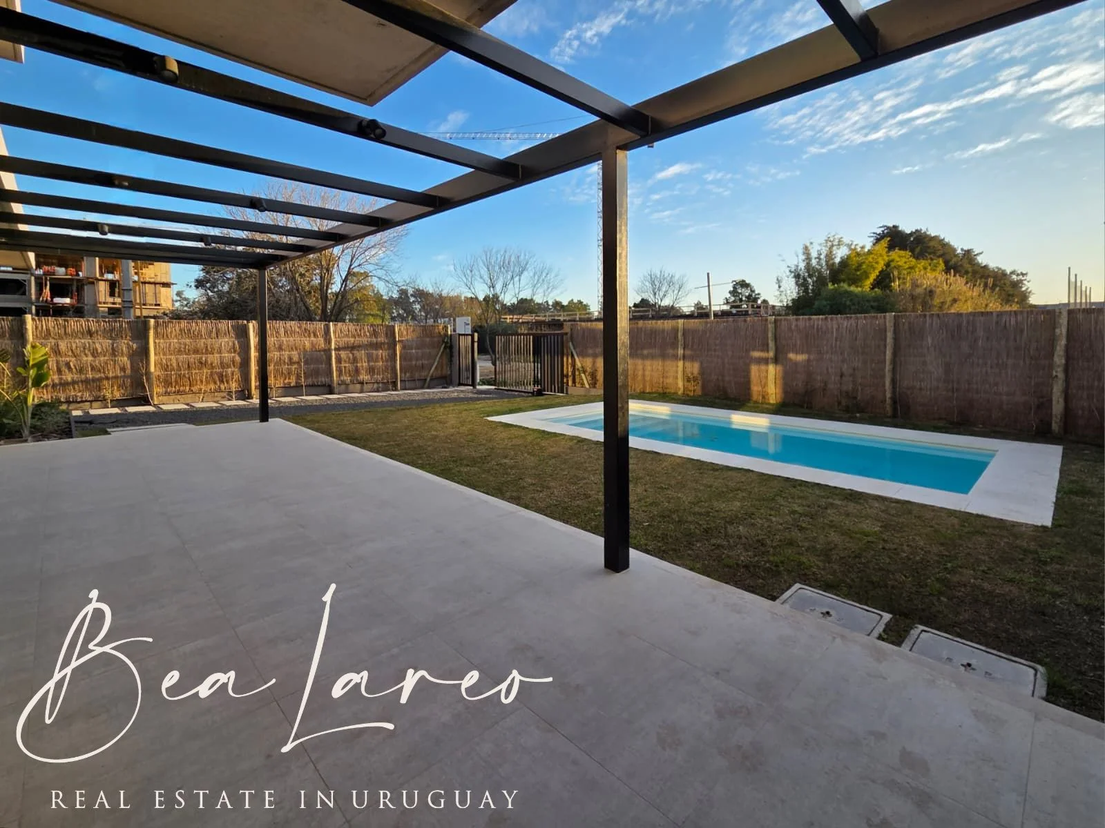Esta casa PH con excelente calidad de construcción y terminaciones, ofrece un equilibrio perfecto entre funcionalidad, estética y confort. Ubicada en Barrio Parques II, junto a los barrios San Nicolás y Olivos, el Portal Brunel y el Club Carrasco Polo, muy cercana a los principales colegios bilingües, y a pocos minutos del centro de Carrasco. Luminosa, de líneas modernas y elegantes, cuenta con 260 m2 construidos, 210 m2 interiores y 50 m2 exteriores, en un terreno de 400 m2. En planta baja ofrece un amplio living comedor con estufa a leña con salida a disfrutable terraza con parrillero, moderna y luminosa cocina integrada con isla, escritorio o playroom, y toilette. En planta alta dispone de 3 dormitorios: el principal en suite con vestidor y balcón privado, y 2 dormitorios que comparten un baño. La calefacción por losa radiante hidráulica con bomba de calor garantiza confort durante todo el año. Previsión para aire acondicionado.