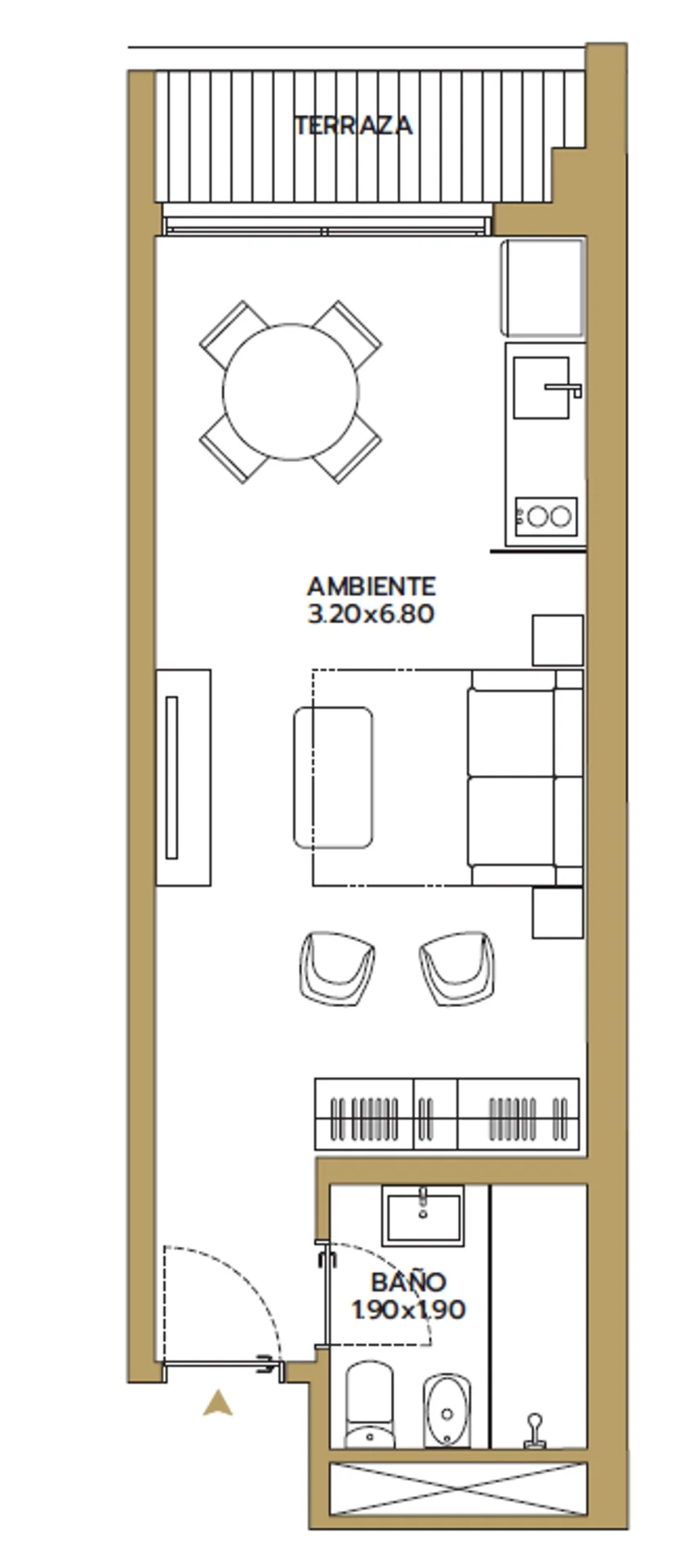 Monoambiente en venta, con garaje, a estrenar, sobre Avenida Sarmiento esq. Franzini.