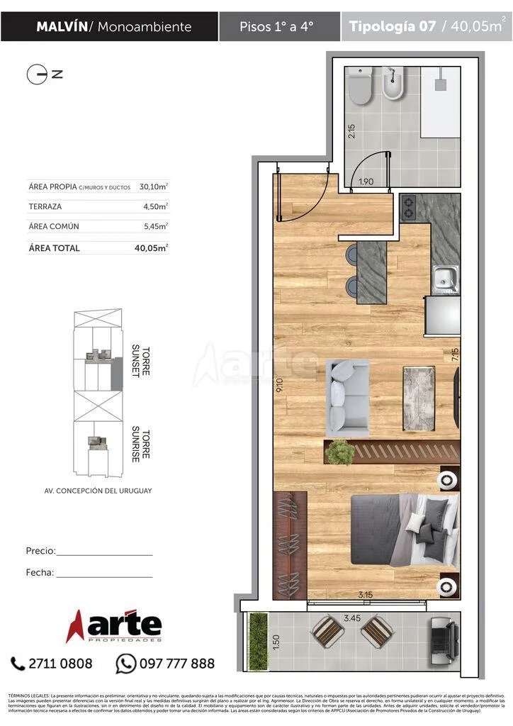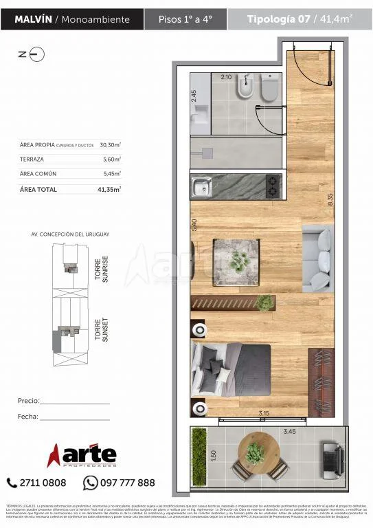 Agradable monoambiente con linda terraza orientado al sol de la mañana, en la mejor zona de Malvín. En un moderno edificio, sobre Concepción del Uruguay, que se estrena el segundo trimestre de 2025 y contará con gimnasio, lavadero, área de cowork y parrilleros de uso común.