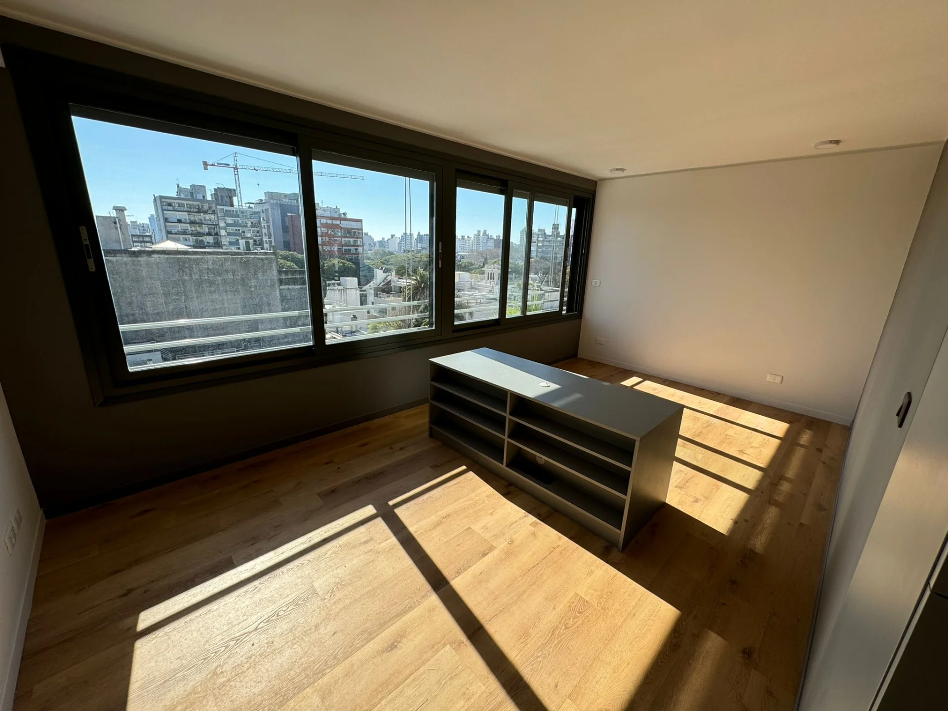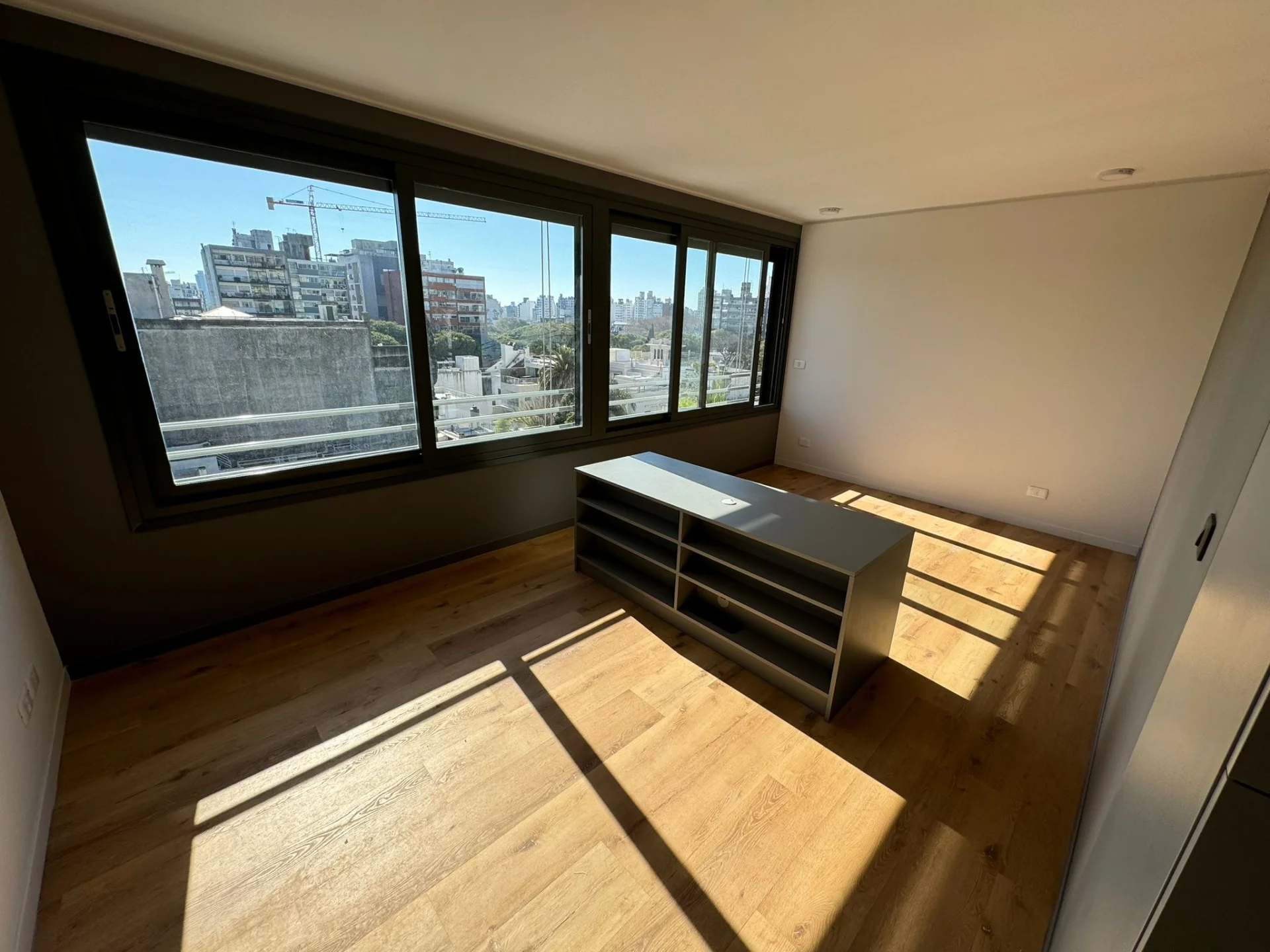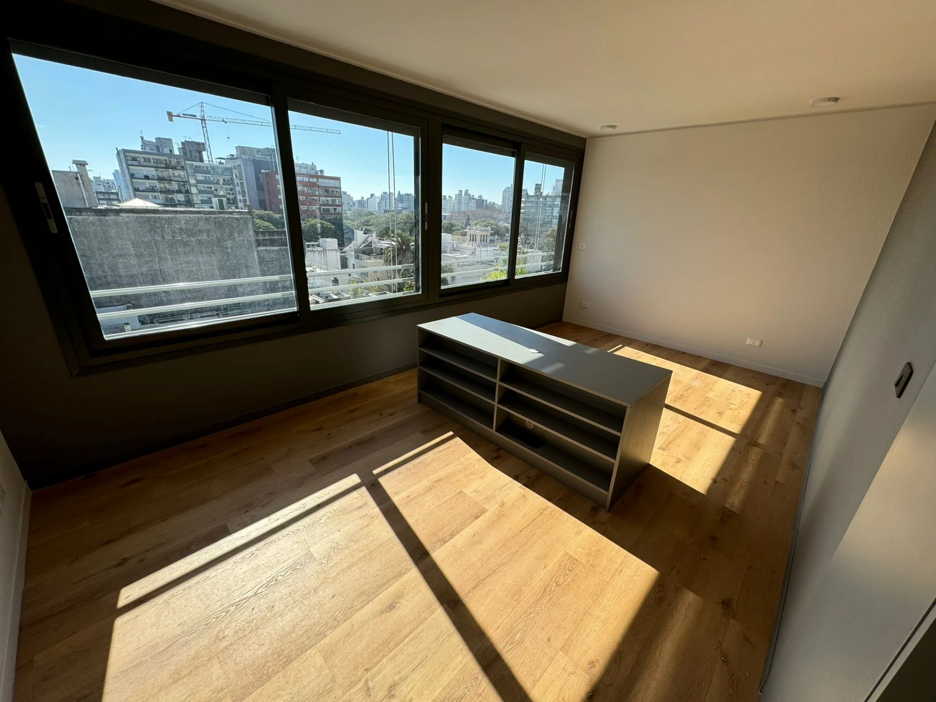 Generoso monoambiente denominado Biambiente por los desarrolladores, destacando su luz natural y ventanales en toda su extensión.
