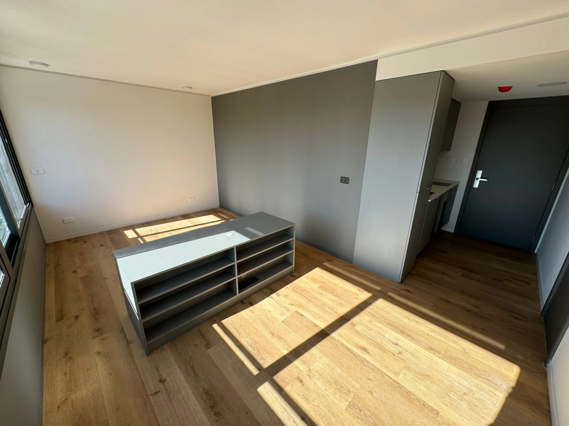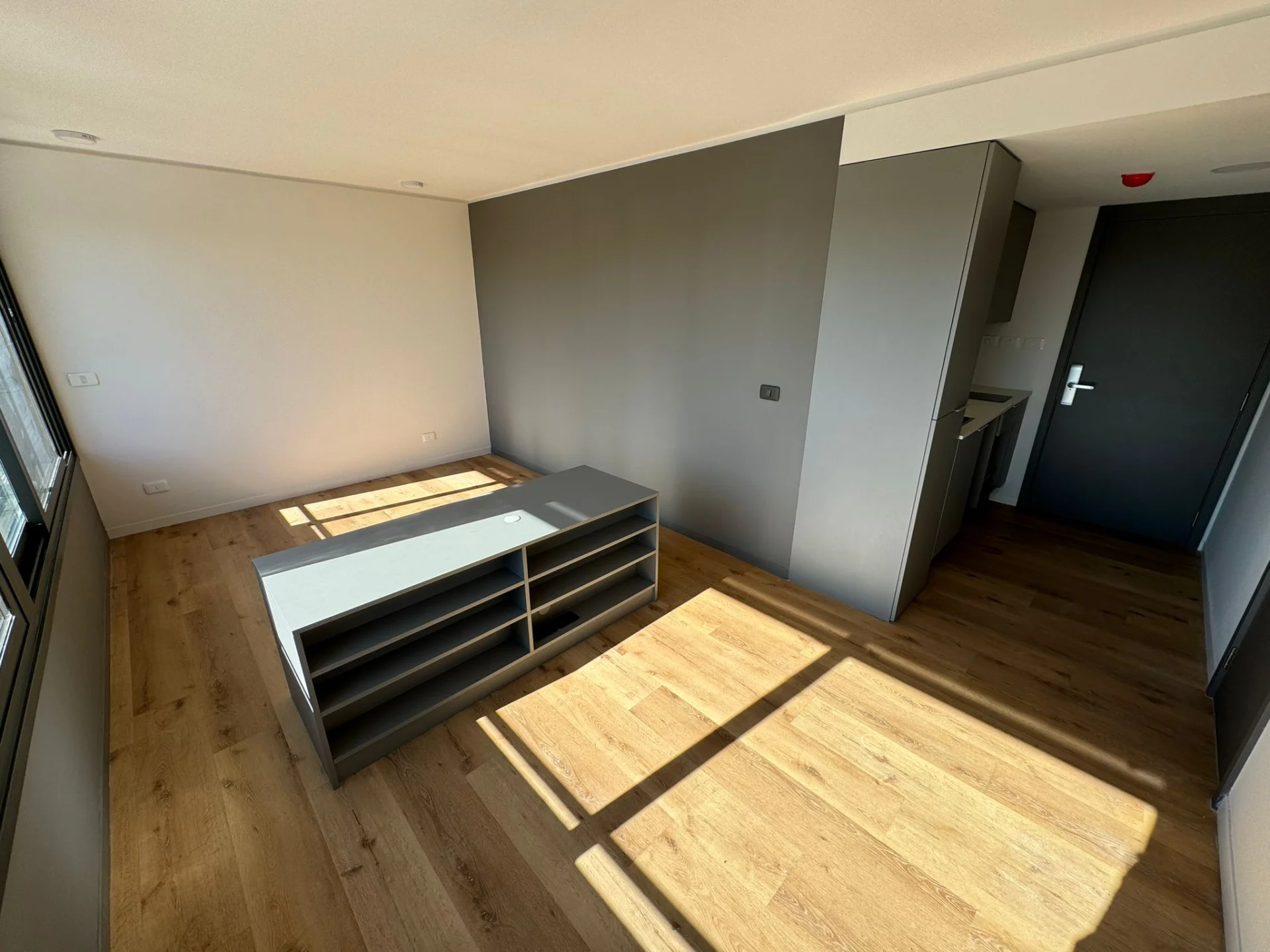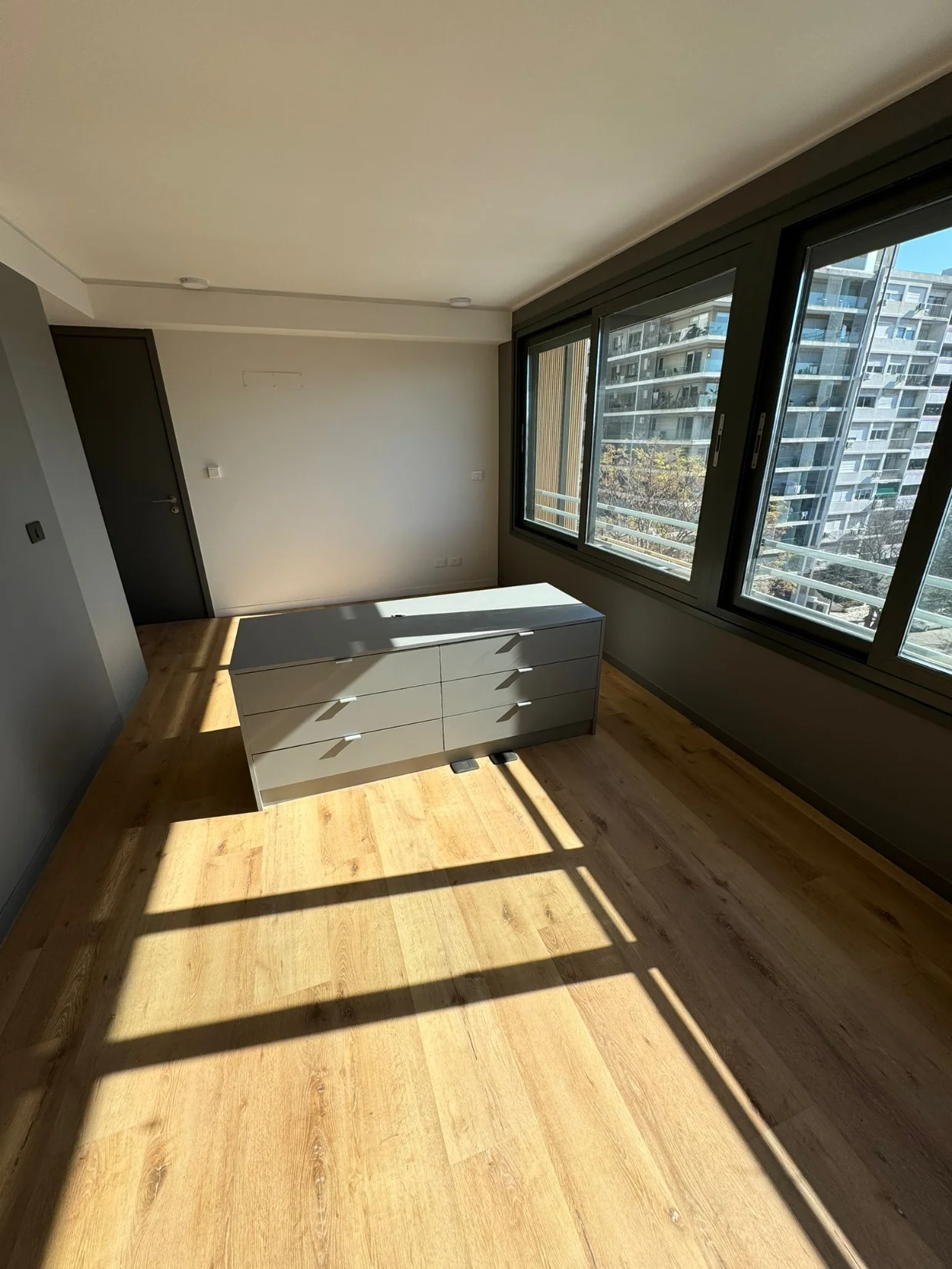 Generoso monoambiente denominado Biambiente por los desarrolladores, destacando su luz natural y ventanales en toda su extensión.