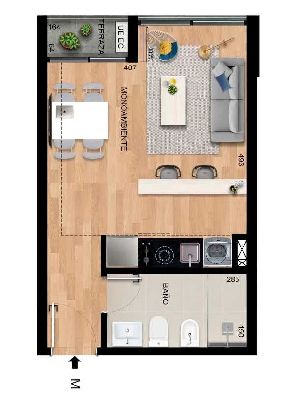 Se distribuye en: Cocina Integrada Living - Comedor Baño completo con instalación para lavarropas y Calefón