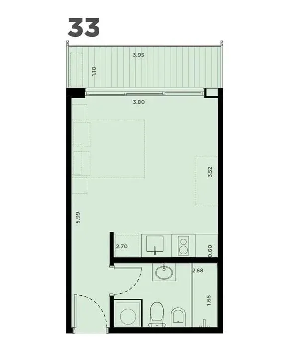Apartamento monoambiente en venta, con excelente distribución y una terraza que amplía el espacio al exterior.