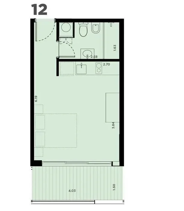 Apartamento monoambiente en venta, con excelente distribución y una terraza que amplía el espacio al exterior.