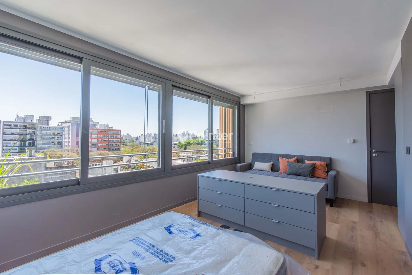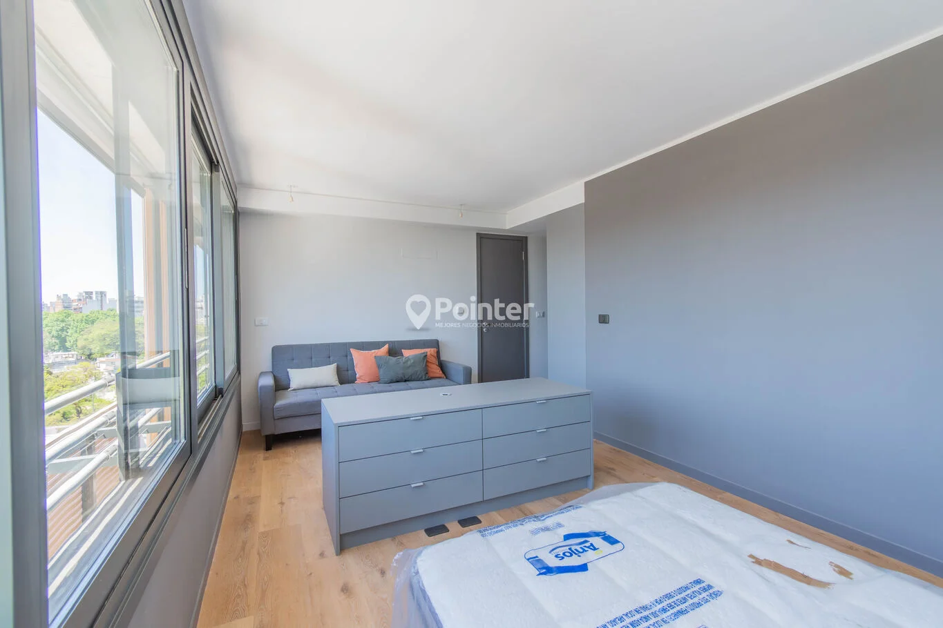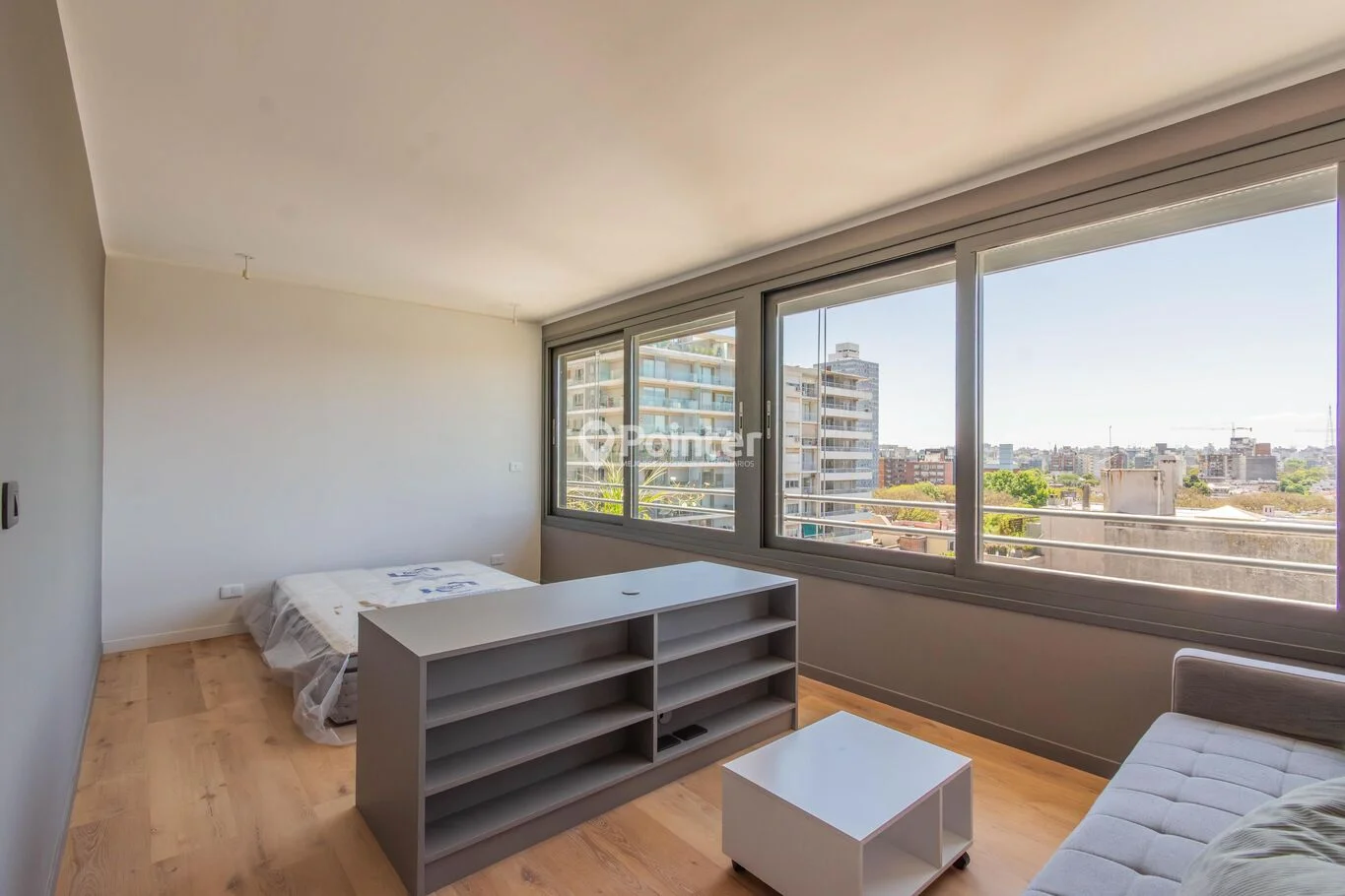 Apartamento \"biambiente\", que a diferencia de los monoambientes tradicionales, está dispuesto de forma apaisada, con un amplio ventanal doble de 5.30 metros y balcón francés.